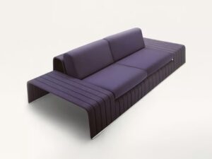 Stuhl. Die Serie FRAME umfasst auch Sessel, Chaiselongue, Podeste, Bänke, Beistelltische und modulare Elemente.