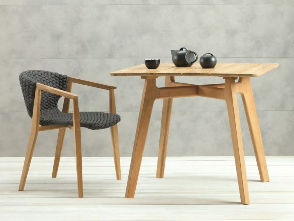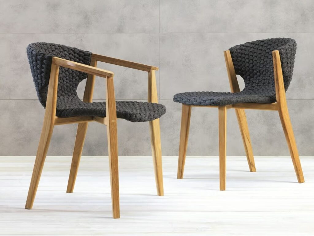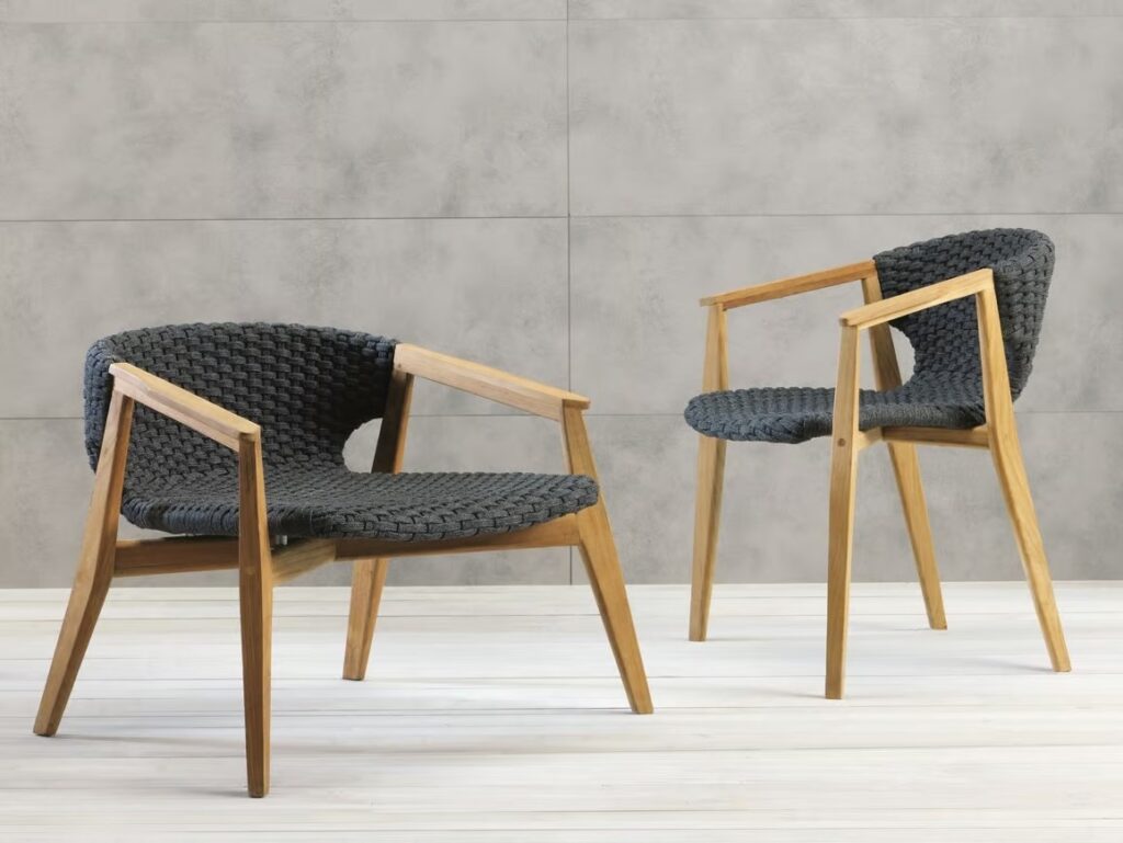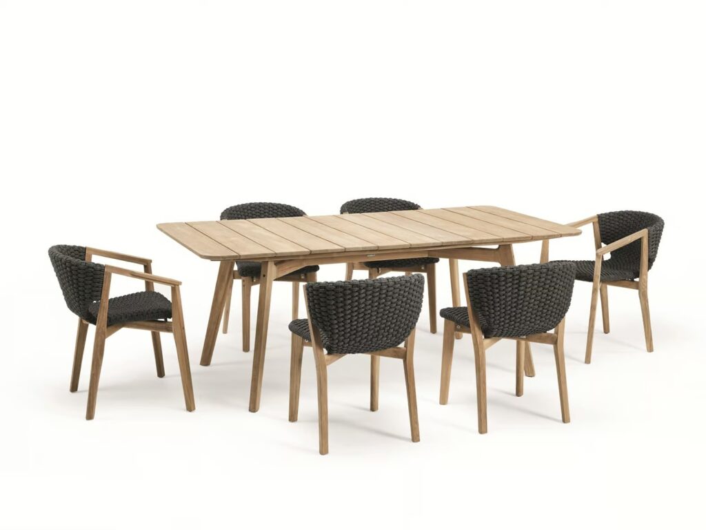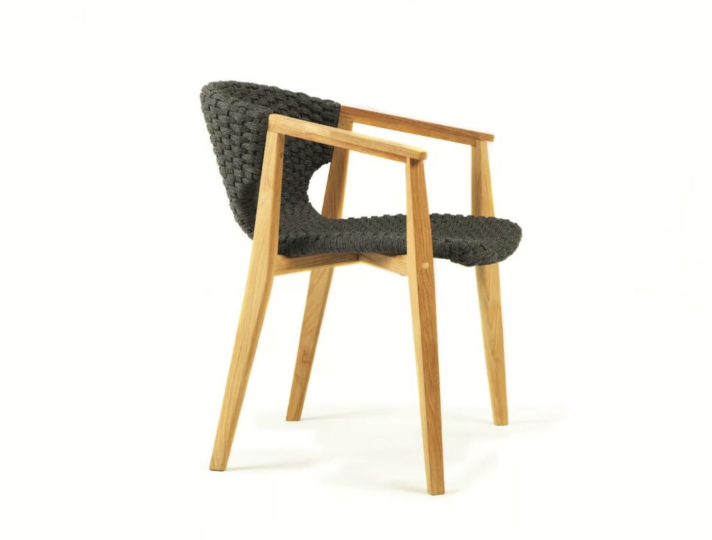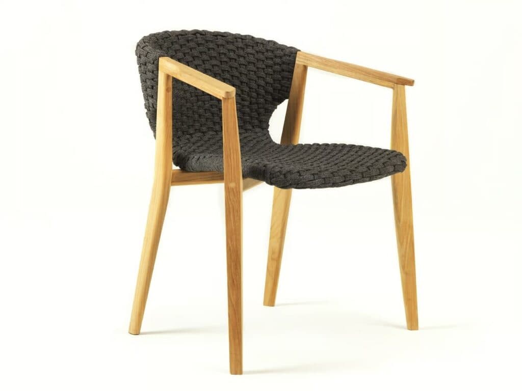 Knit ist ein Stuhl mit Gestell aus Teakholz und Polsterung aus bequemem Flachseil.