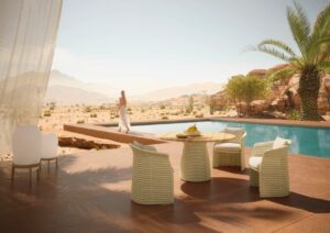 Für seine erste Kollektion für DEDON fand Wilkinson seinen Spirit of Place in Fiskardo, einem Fischerdorf an der Nordspitze der griechischen Insel Kefalonia. Die lauen Sommertage in Fiskardo verbringt man am besten am Meer und beobachtet stundenlang die Segelboote, die in den Hafen ein- und auslaufen. Die sanften, skulpturalen Kurven von FLLAIR bieten einen ruhigen Zufluchtsort inmitten der zerklüfteten Küstenlinie.