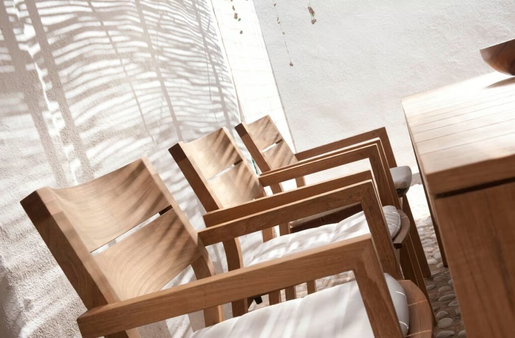 Kos: Elementarer Chic mit optimal ausgeklügeltem Sitzkomfort. Die Kombination der breiten Latten und das klare und zugleich eindrucksvolle Design zeigen das Teakholz von seiner modernen robusten Seite. Wir verarbeiten nur Teakholz allerbester Qualität, welches mit einem A-Label ausgezeichnet wurde und welches auf indonesischen Plantagen nachhaltig angebaut wurde. Die Produktion wird ganzjährig von unserer Tochterfirma Tribù Asia vor Ort kontrolliert.
