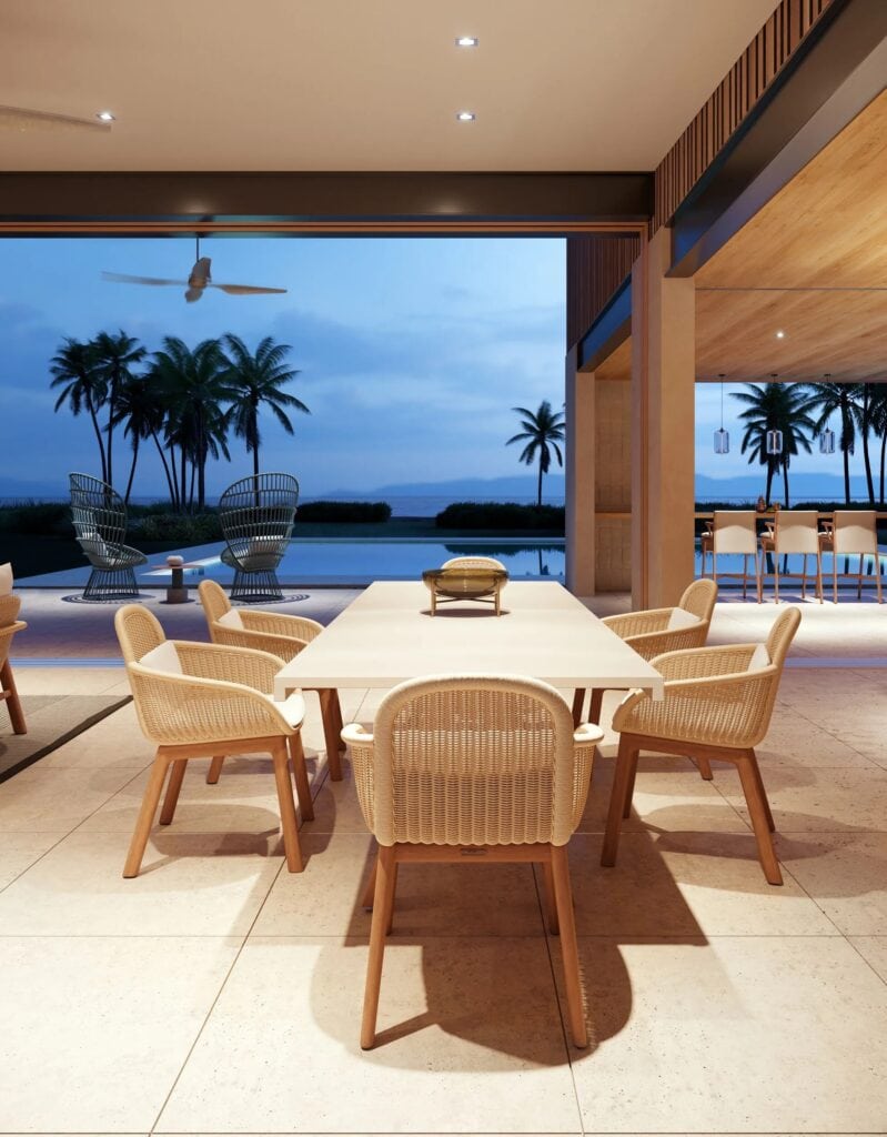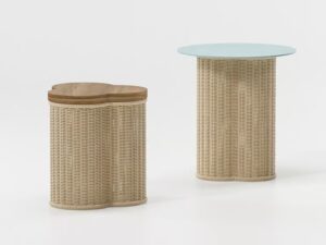 Die Vimini-Kollektion umfasst einen Esszimmer-Sessel, Sofas und Beistelltische.