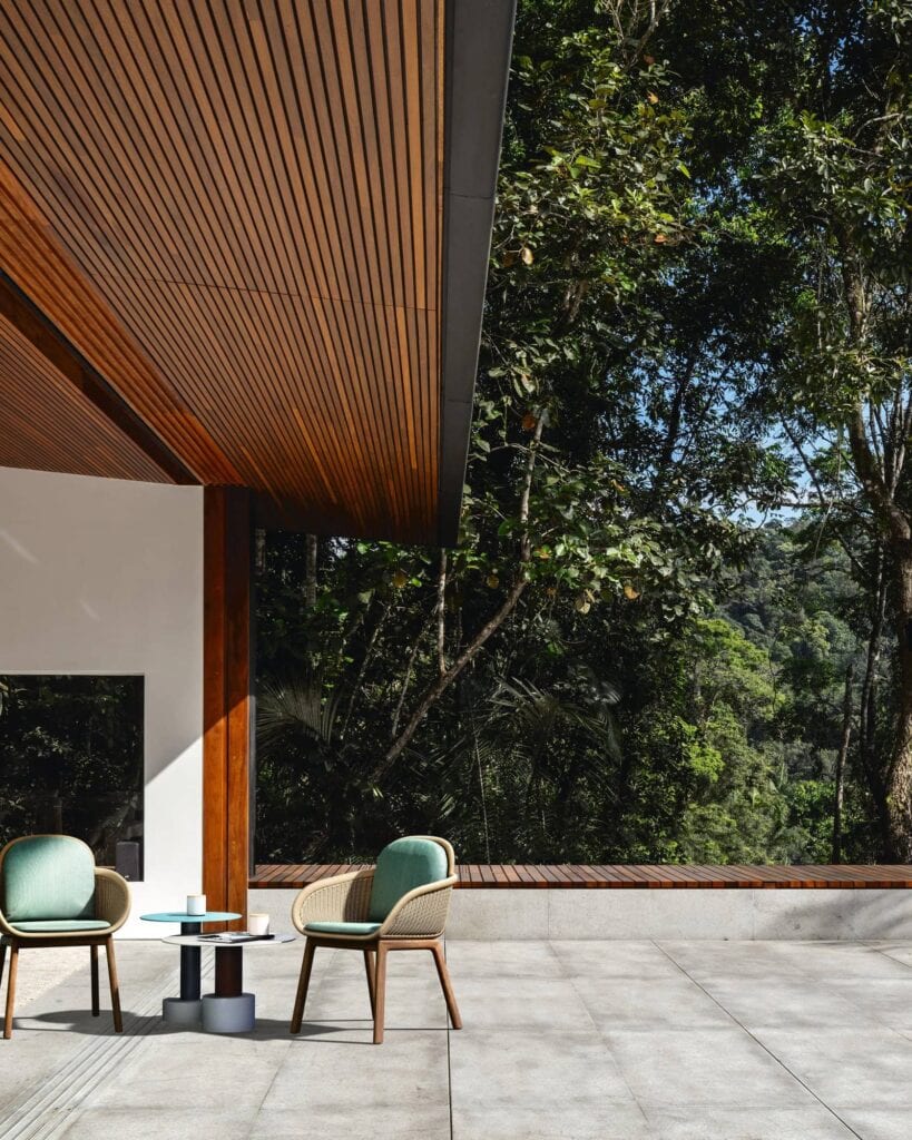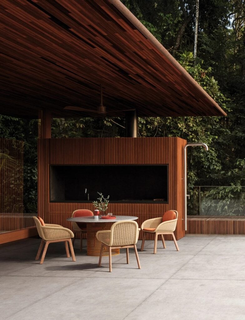 Wir haben genau die richtige Menge an Outdoor-Geflecht mit einem raueren Holzrahmen verwendet. Er hat nicht den gleichen modernistischen Geist wie der Basket, aber er ist vertraut genug, dass er, wenn man sich ihm nähert, eine Erinnerung weckt und man sich wie zu Hause fühlt. Das war er auch, mehr oder weniger - ein Objekt der Erinnerung.