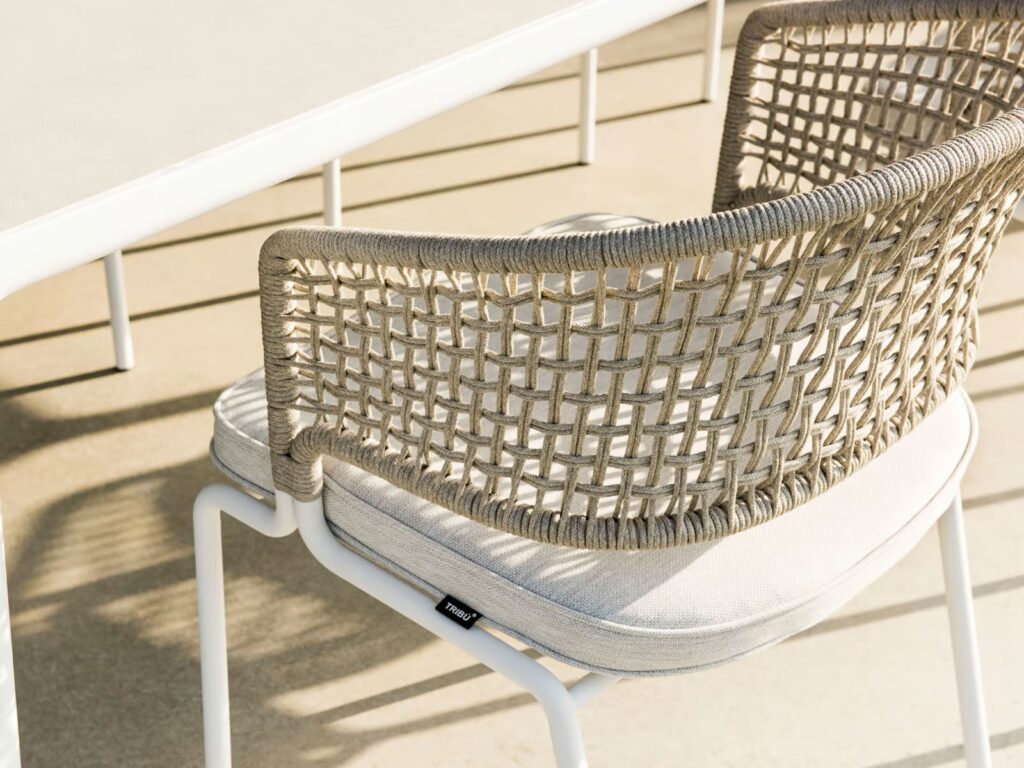 Die luftigen, eleganten Formen der CTR-Kollektion kombinieren Technik mit natürlicher Eleganz. CTR verdankt seinen Namen dem pulverbeschichteten Rohrprofil, das der kompletten Linie des Stuhls folgt. Mit CTR realisiert der italienische Designer Piergiorgio Cazzaniga etwas, worin er gut ist: technischen Sachverstand mit einem scheinbar einfachen Design kombinieren. Der Rahmen des Stuhls besteht aus pulverbeschichteten Inox-Rohrprofilen, die in einer ununterbrochenen Linie gebogen sind. Dies erfordert großes Geschick, da die Ecken massiv sind. Die Rückenlehne ist an nur 2 Punkten am Rahmen befestigt, wodurch sie zu schweben scheint. Die offene gewebte Struktur erinnert an die Jahrhunderte alte Tradition des Webens. Die Sitzfläche ist mit einem Kissen verkleidet, das wasserabweisend und einfach zu entfernen ist.