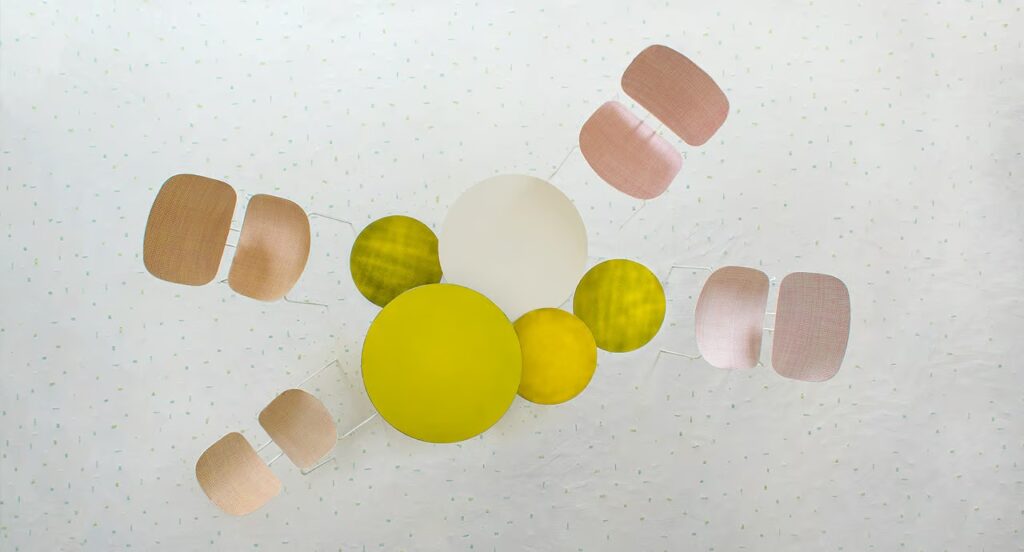 Tela gestaltet die Oberflächen von Diade und schafft ein atemberaubendes Erscheinungsbild der Textilien mit unerwarteten Mélange-Effekten, die niemals gleich sind. Die Unregelmäßigkeit der Farben ist auf die Struktur von Twiggy zurückzuführen, dem Garn, das zur Herstellung von Tela verwendet wird, und ist das charakteristische Merkmal dieser Produktionstechnik.