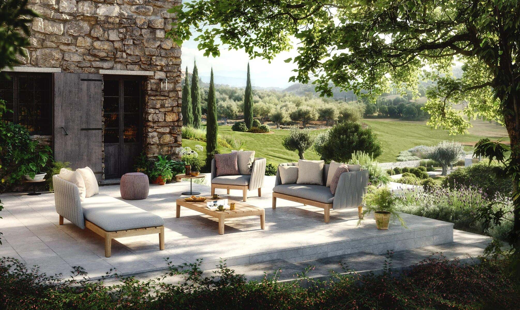 Im Jahr 2020 brachte Royal Botania den Sessel Calypso 55 auf den Markt und hat die Calypso-Kollektion seitdem um die Calypso Lounge erweitert. Die Lounge verfügt über Teakholzgestelle in drei verschiedenen Grössen - ein quadratisches Gestell von 72x72 cm, ein doppelt so grosses Gestell und ein Gestell in dreifacher Länge. Die Lounge bietet ausserdem L- oder U-förmige Rückenlehnen aus Edelstahl, die für zusätzlichen Komfort mit gepolsterten Bezügen ausgestattet werden können. Diese Bezüge lassen sich zum Reinigen und Überwintern einfach per Reissverschluss abnehmen und sind in verschiedenen Farben erhältlich. Für eine natürlichere Optik und Haptik haben wir unser originelles KRISKROS-Webmuster aus synthetischen Outdoor-Fasern in drei verschiedenen Farbtönen entwickelt. Als Alternative zur textilen Rückenlehne kann die Lounge auch mit einer gewebten Rückenlehne ausgestattet werden. Die Möglichkeiten für Arrangements und Ausführungen sind endlos.