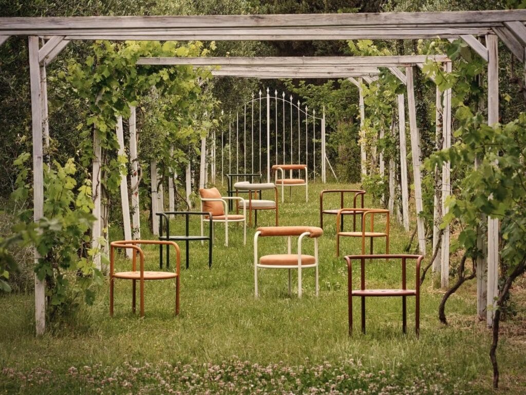 Roè | A collection composed of sedia, coffee table, divano and poltrona characterized by polished lines and a refined silhouette that gives a design without time adaptable to svariati environments (residenziali/contract). The richest element of the collection is the one that is pressed in which it is not profiled and extruded in aluminum. This structure provides a touch of modernity and lightness, allowing for diverse personalization possibilities.