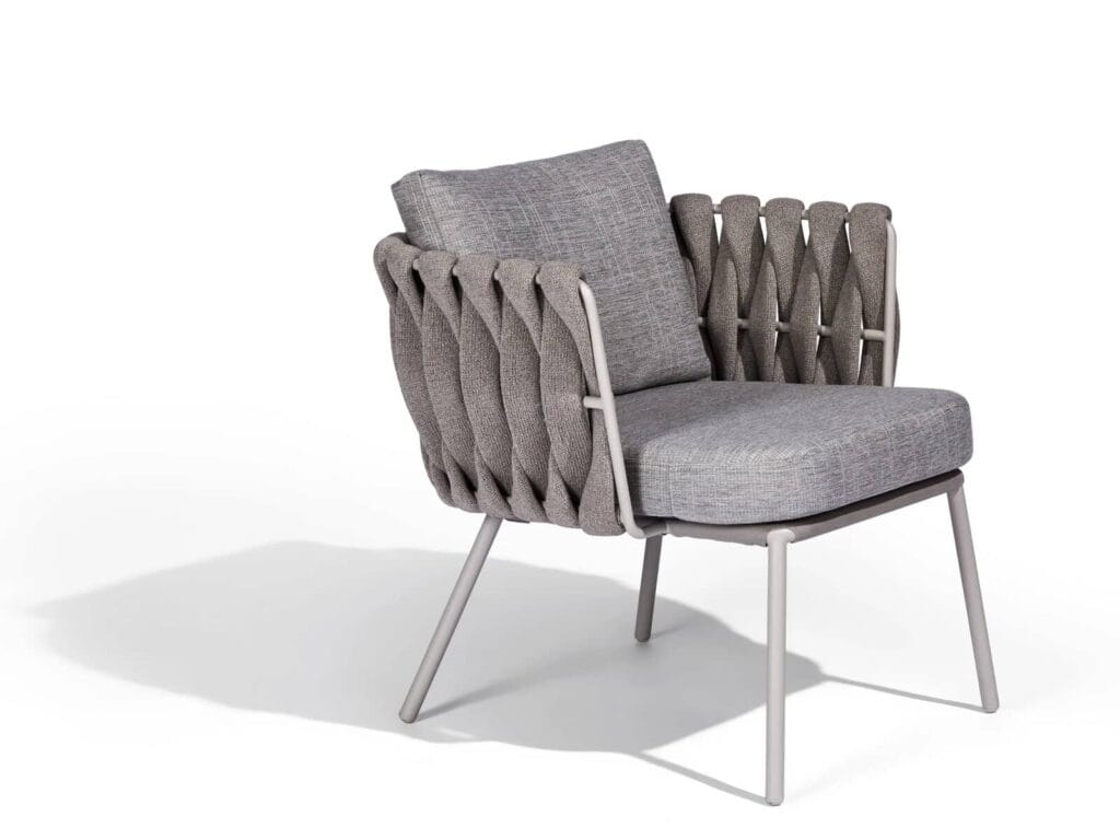 Gepolsterter Stuhl aus Stoff mit Armlehnen