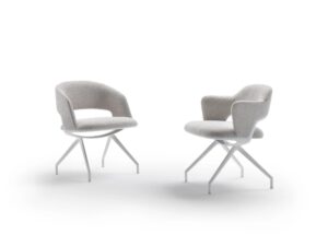 This armchair is available in both fixed and swivel versions, with and without armrests.