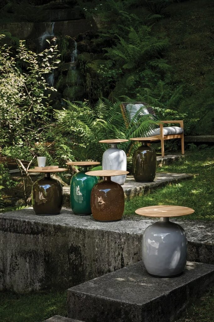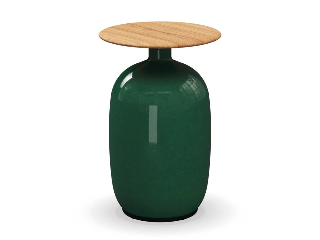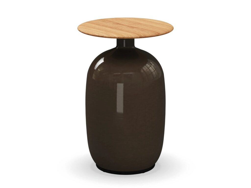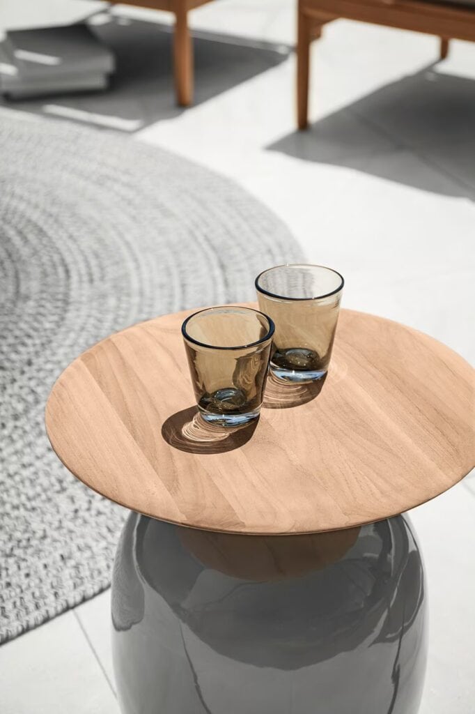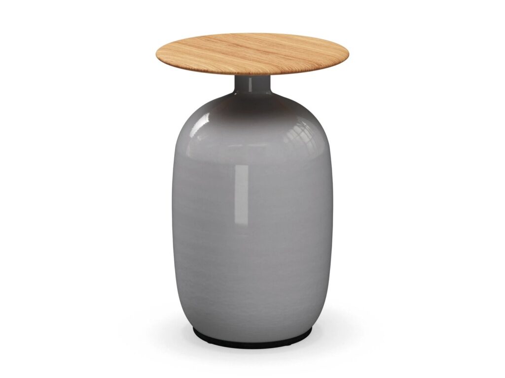Blow - Runder Beistelltisch aus Keramik und Teakholz für den Garten. Die weichen Linien und natürlichen Farbtöne dieser wunderbar abgerundeten Keramiksockel passen perfekt zu den Tischplatten aus Plantagen-Teakholz. Diese auffälligen und inspirierenden Akzenttische reflektieren das Licht wunderschön auf ihren weichen, runden Oberflächen und passen zu jedem Artikel der Gloster-Serie, während sie jedem Aussenbereich Charakter verleihen.