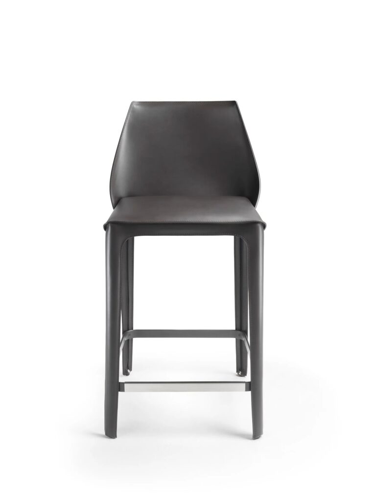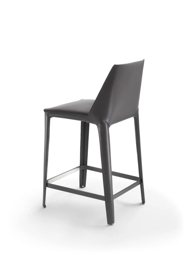 Hochhocker aus gegerbtem Leder mit Rückenlehne