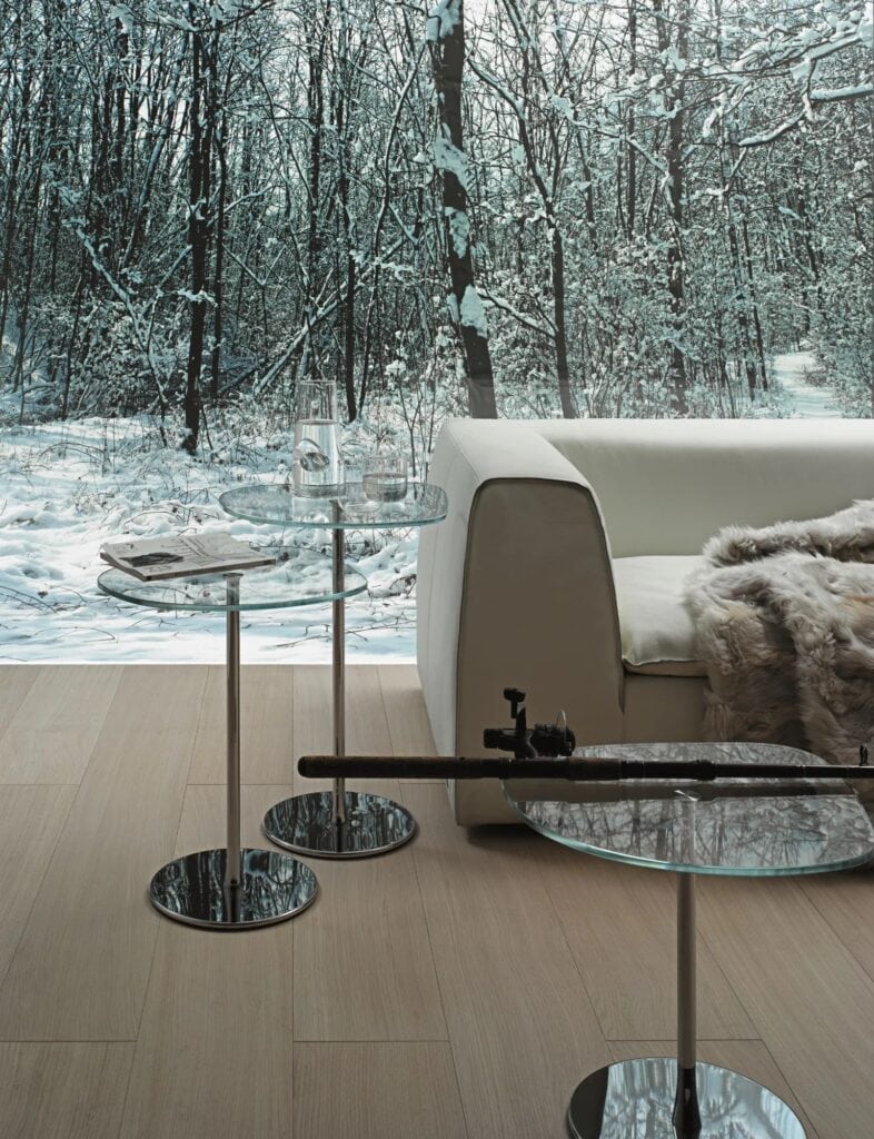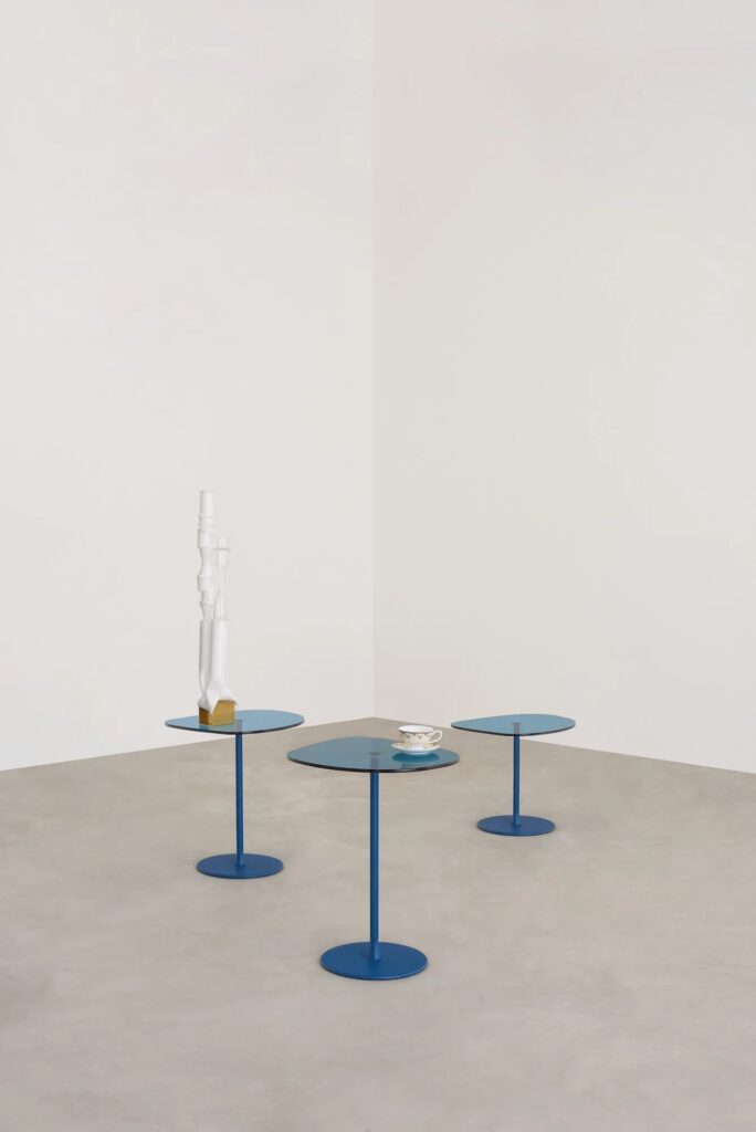 Tischchen mit Gestell und Basis in lackiertem Stahl oder in den exclusiven Desalto Ausführungen. Platte aus temperiertem Glas mm 10.