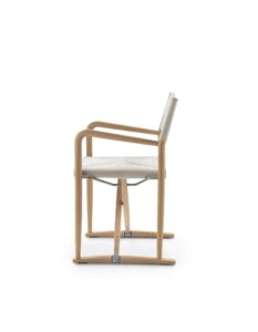 The carefully crafted solid iroko wood frame, turned and hand-finished, along with the meticulous attention to detail in the stainless steel metal components, reflects a high level of craftsmanship and expertise.