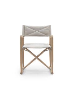 The armchair is completed with a backrest and seat in durable canvas fabric, available in a wide range of colors.