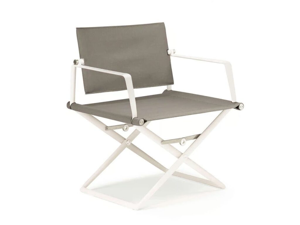 SEAX ist ein klappbarer Gartenstuhl aus pulverbeschichtetem Aluminium und Stoff.