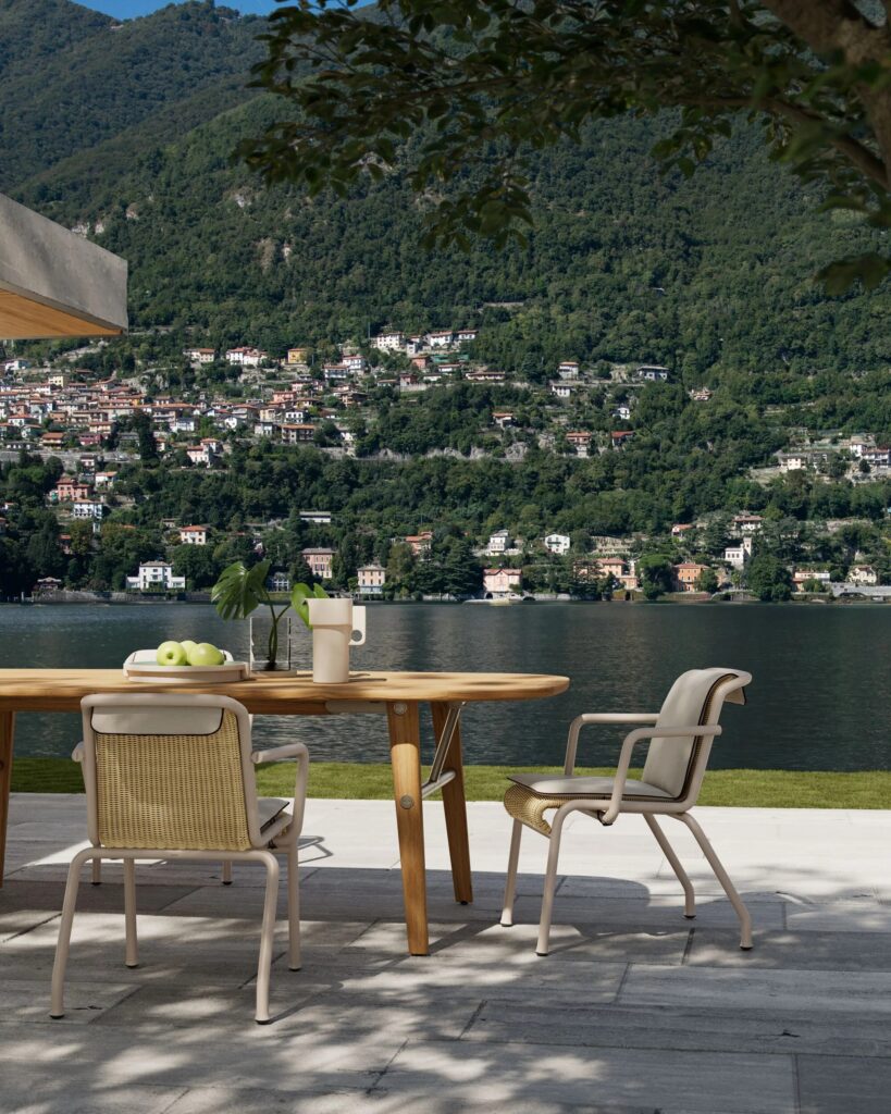 Die Eolias-Kollektion von Antonio Citterio wurde mit dem Ziel entwickelt, vielseitige Produkte zu schaffen, die sowohl im Freien als auch in Innenräumen funktionieren. Der Schwerpunkt liegt auf Nachhaltigkeit durch die Verwendung natürlicher und synthetischer Materialien wie Aluminium und Rattan.