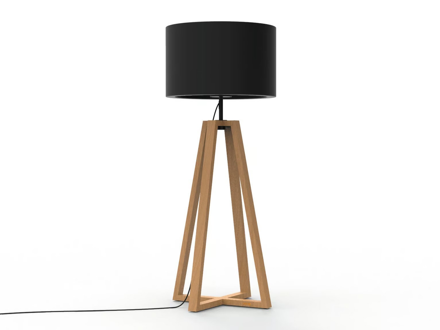 Club Lounge ist eine LED-Stehleuchte für den Aussenbereich mit Teakholzstruktur und PVC-Lampenschirm.