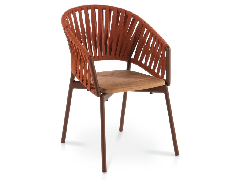 PIPER bietet eine Vielzahl an stapelbaren Outdoor Stühlen, mit und ohne Armlehnen, und Esstischstühle, die sich beim PIPER 122 Stuhl durch ein zur Verflechtung aus Polyester- oder Acrylriemen der Rückenlehnenverkleidung passendes Aluminiumrohrgestell auszeichnen. Die Kombination der Materialien kann anhand der Sitzfläche erweitert werden: weicher aus Teak oder technischer aus Polyurethanharz, Farbe Mole. Das Sitzkissen, das über einen Befestigungsdorn verfügt, der in den Schlitz Wasserablaufschlitz auf der Sitzfläche gesteckt werden kann, ist in den Outdoor Geweben der umfangreichen RODA Palette erhältlich: ein weiterer Farbtupfer für neue und unvorhersehbare Kombinationen. Durch die angebotenen Bezugvarianten eignet sich der PIPER Stuhl gut zur Kombination mit den Gartentischen aus Holz oder Metall; die Stapelfähigkeit und die einfache Pflege machen aus ihm ein Produkt, das sich für die Outdoor Bereiche von Restaurants und Hotels eignet.