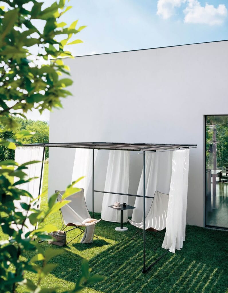 LAWRENCE is a practical outdoor armchair with a simple and elegant design, timeless and placeless; it combines the simplicity of cotton with various colors, creating a perfect play of hues in outdoor furniture.
