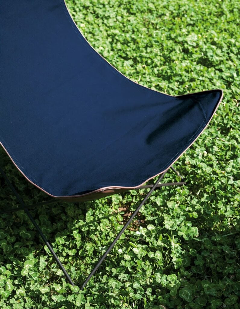 Lawrence is a collection with an essential design: a waterproof cotton fabric with leather inserts covers the tops of four isostatic triangles made of metal rods. Available in multiple color variations and complemented by a practical pouf, the collection fits perfectly in any environment, both indoors and outdoors.