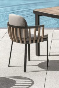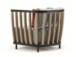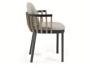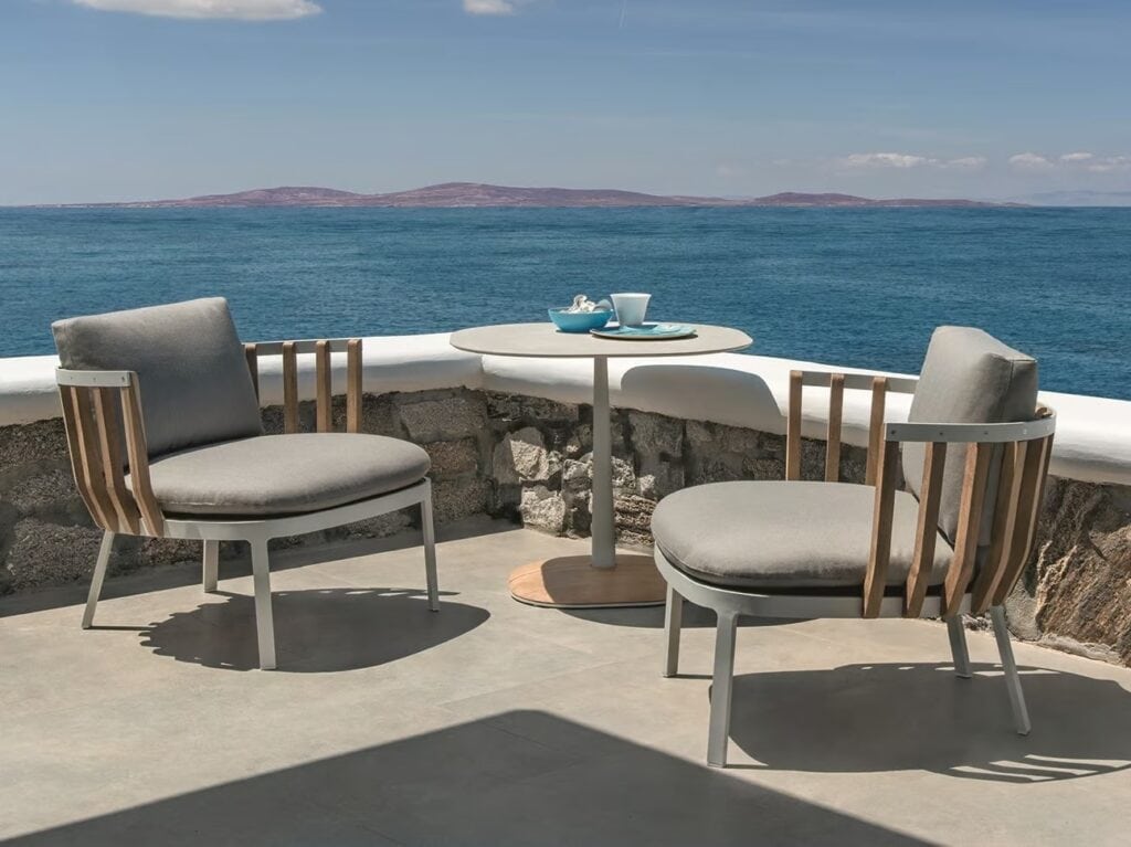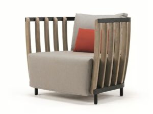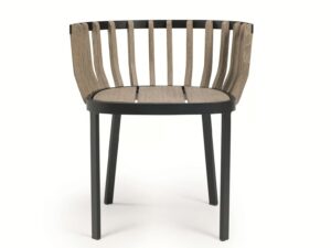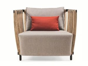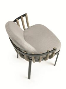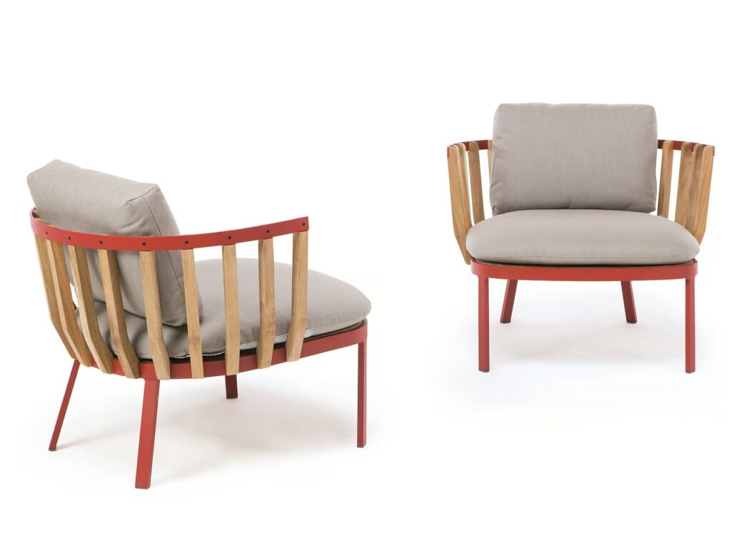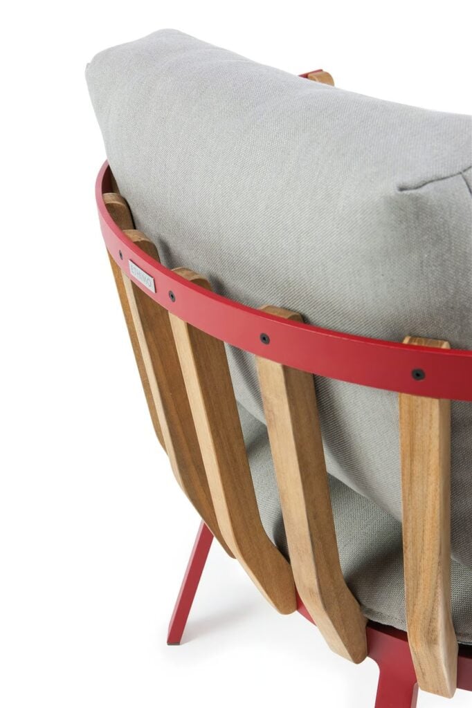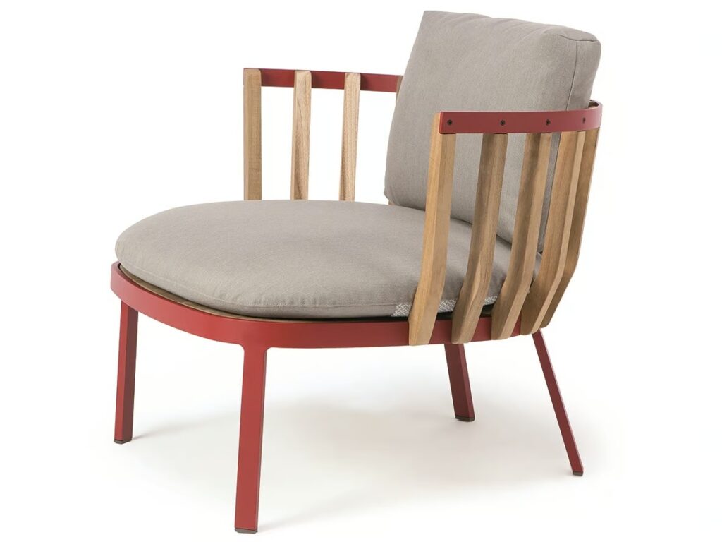 Der Armlehnstuhl, der mit seinen geringeren Abmessungen den schon in der Kollektion enthaltenen Lounge-Sessel ergänzt, passt sich problemlos den Bereichen an, die der Entspannung gewidmet sind, wie dem Garten, der Strandpromenade, dem Land und auch dem Wohnzimmer.