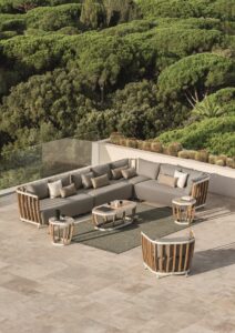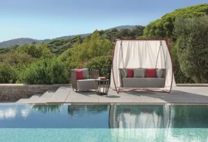 Ethimo stellt zwei neue Artikel vor, Design von Patrick Norguet, die sich perfekt in die Kollektion Swing einfügen: einen Armlehnstuhl und einen Hocker. Diese hochaktuellen Einrichtungselemente zeichnen sich durch ein architektonisches Linienspiel aus Teakholz aus, das jede Umgebung modern und elegant macht.