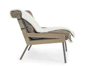 Allaperto Veranda, der Loungesessel mit Rattan, zeugt davon, dass der Umweltaspekt bei der Auswahl der Materialkombinationen mit Vintage-Charakter immer wichtiger wird. Das Geflecht aus natürlichem Rattan eignet sich perfekt für Übergangsbereiche zwischen Indoor und Outdoor, wie Arkaden oder Verandas. Im täglichen Leben können wir nämlich den Komfort der Innenräume darauf ausweiten und auch dort mit zeitgenössischem Exterior Design überraschen. Durch die spezielle Textur und das raffinierte Geflecht des Rattan kann in den halboffenen Bereichen, in denen diese neue Version des Sessels Allaperto aufgestellt wird, eine faszinierende „exotische“ Wirkung erzielt werden.