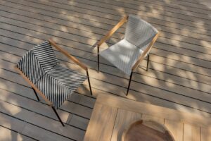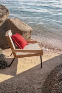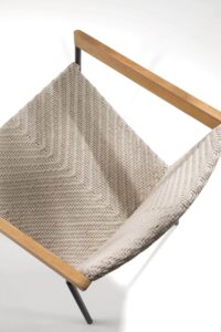 Bei Allaperto Nautic, dem zweiten neuen Outfit, das Matteo Thun und Antonio Rodriguez geschaffen haben, ist die gesamte Kombination aus Teakholz mit Polypropylenkordel, einem recycelbaren Material, das 100% outdoor-geeignet ist. Der Mood Nautic lässt sich vom Meer inspirieren und kombiniert das edle Teakholz mit einem kunstvollen Geflecht aus Kordel mit Fischgratmuster, das den Möbeln Charakter verleiht und die schlanken Linien hervorhebt.