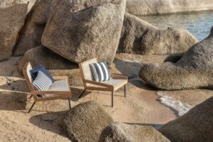 Die aus der Zusammenarbeit von Ethimo, Matteo Thun und Antonio Rodriguez hervorgegangene Kollektion Allaperto ist durch die verschiedenen „Outfits“, mit denen sie ihr Umfeld interpretiert, zu einer Stilikone geworden. In den beiden neuen Moods Veranda und Nautic wird Teakholz mit natürlichem Rattan oder Kordel kombiniert.