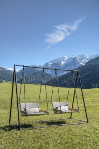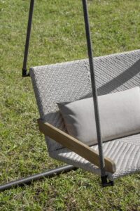 Bei dem neuen Hängesessel, der auch als freistehende Schaukel erhältlich ist, kann die Struktur aus Teakholz, welche die gesamte Kollektion Allaperto kennzeichnet, individuell mit Rattan (Mood Veranda), Kordel (Mood Nautic) oder Etwick-Faser (Mood Mountain) kombiniert werden. Die grosszügigen Abmessungen und die solide Struktur machen daraus eine ganz neue Lösung zum mühelosen „Schaukeln“ an der frischen Luft bei maximalem Komfort.