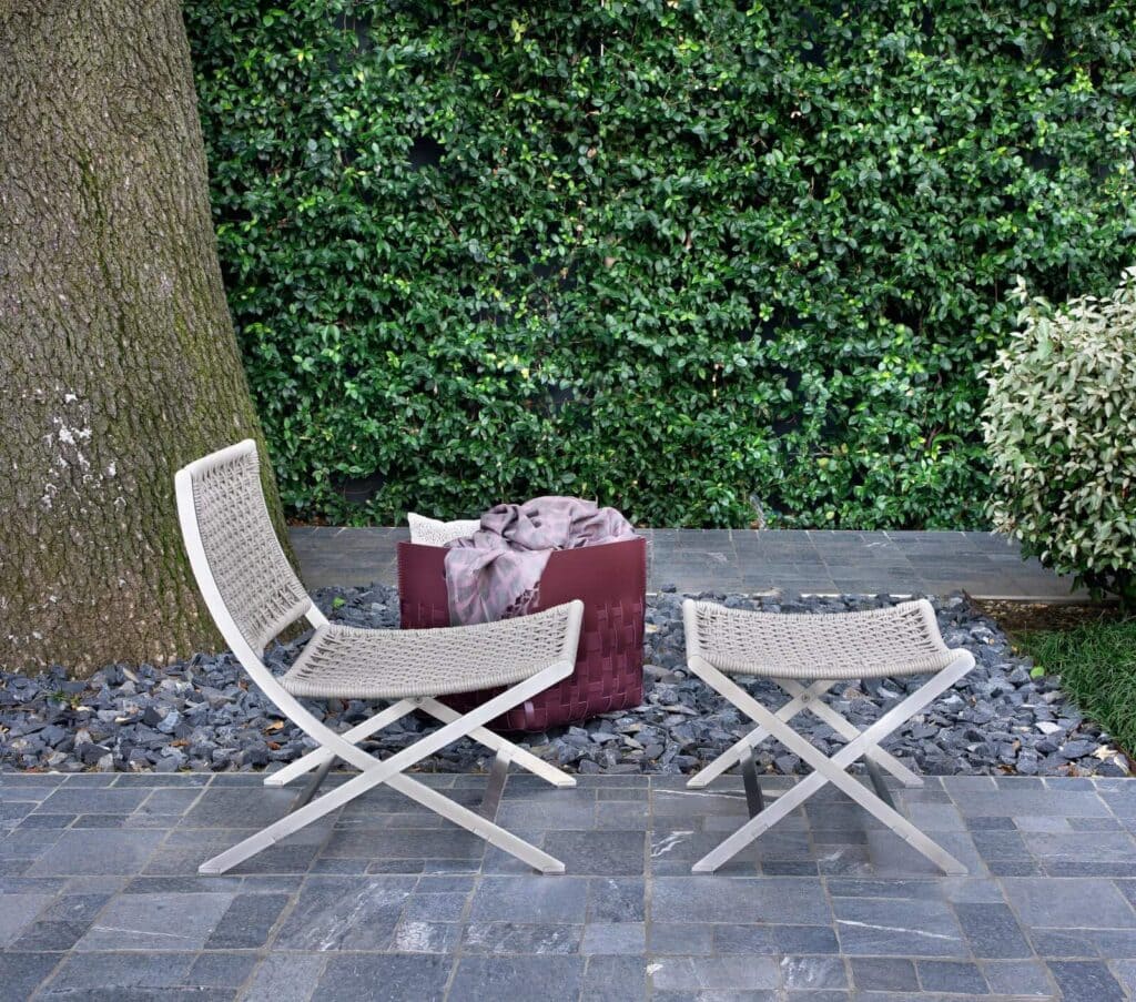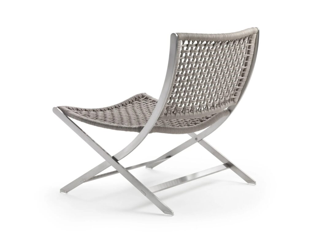 Der 2004 lancierte Sessel Peter hat sich von Anfang an durch seinen leichten Charakter und seine natürliche Neigung ausgezeichnet, den Innenraum zu verlassen und auf die Terrasse oder das Deck eines Boots auszuwandern. Dieses Jahr ist er endlich auch in der Outdoor-Version erhältlich, aus Materialien, die sorgfältig und mit besonderem Blick auf ihre herausragende Eignung für den Außenbereich ausgewählt worden sind. Die elegant überkreuzten, geschwungenen Metallbeine verleihen dem Sessel Peter Outdoor eine moderne und elegante Note. Das Gestell besteht aus rostfreiem Nickel-Chrom Stahl und ist auch mit Oberfläche mit Pulverbeschichtung in den Farben Weiß, Kaki, Weinrot und brüniert verfügbar. Die Sitzfläche und die Rückenlehne sind mit einem hochwertigen leichten und zugleich robusten Geflecht aus Polypropylenfaser oder PU-Gummi ausgeführt, erhältlich in einer eleganten Farbpalette, die von natürlichen Tönen bis Bordeaux und Olivgrün reicht. Der Sessel Peter Outdoor kann mit dem gleichnamigen Polsterhocker kombiniert werden. Auf Anfrage ist außerdem ein Sitzkissen erhältlich.