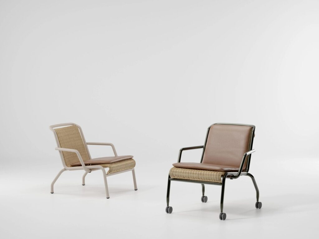 Die Eolias-Kollektion von Antonio Citterio wurde mit dem Ziel entwickelt, vielseitige Produkte zu schaffen, die sowohl im Freien als auch in Innenräumen funktionieren. Der Schwerpunkt liegt auf Nachhaltigkeit durch die Verwendung natürlicher und synthetischer Materialien wie Aluminium und Rattan.
