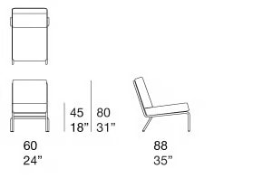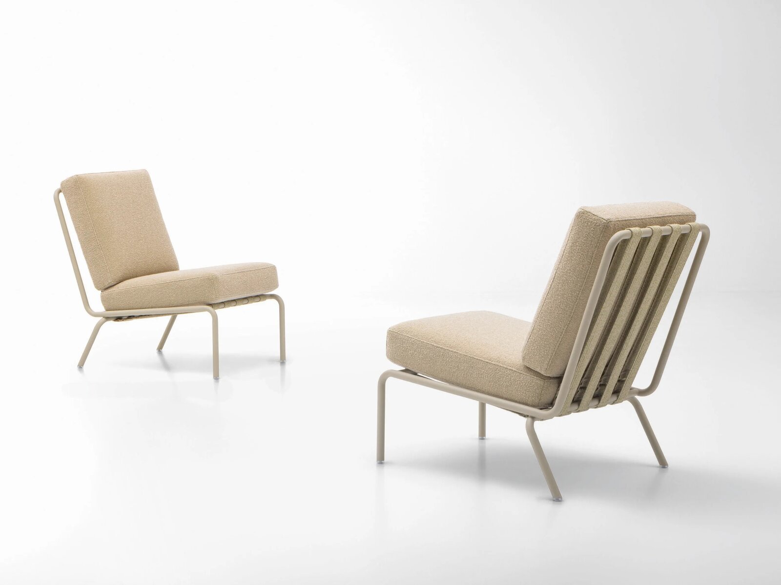 Azul is a small armchair designed by Lina Bo Bardi for the Casa de Vidro, the iconic residence of the Bardi couple in São Paulo, now home to the foundation that preserves their legacy and memory. It consists of a simple metal structure to which straps are attached to support the seat and back cushions.