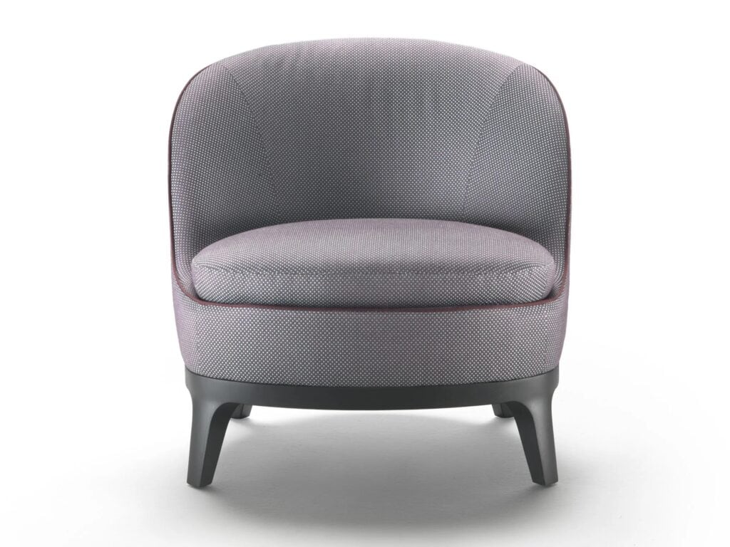 Eine anspruchsvolle Kollektion, die ein Sofa, Sessel, eine Chaiselongue, eine Bank und ein Bett umfasst. Die Stücke suggerieren die Erinnerung an traditionelle Möbeltypen, deutlich sichtbar an der großen, umhüllenden Rückenlehne ohne Armlehnen. Die Proportionen der hohen Rückenlehne bilden ein Gegengewicht zu der Massivholzstruktur mit ihren kurzen, nur leicht vom Boden abgehobenen Beinen. Ein besonderes und sehr erfolgreiches Stück ist die große gepolsterte Bank mit zentraler Rückenlehne, eine Ikone der Kollektion, von großer visueller Wirkung, in der Mitte der Halle eines Hotels oder im Eingang einer eleganten Residenz, vielleicht am Fuße einer Doppeltreppe. Der Bezug aus Leder oder Stoff kann mit farblich passenden oder kontrastierenden Ripsbändern versehen werden.