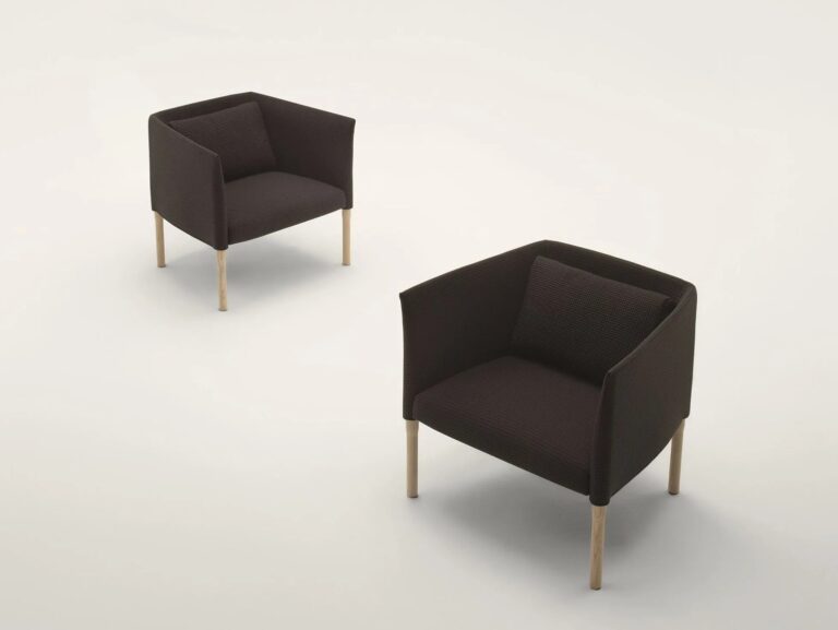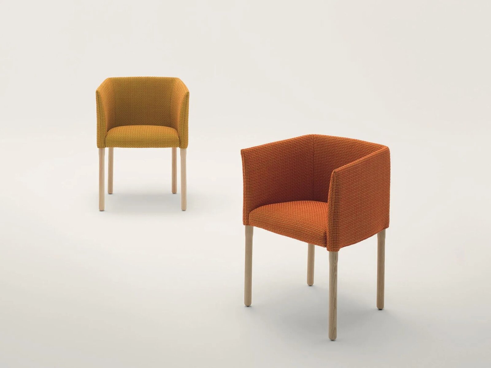 ELSIE - Serie bestehend aus Stuhl und Sessel für Innenräume. Struktur aus Stahl, Rückenlehne und Sitzfläche mit elastischen Gurten versehen. Beine aus natürlichem oder dunkel gefärbtem Eschenholz. Polsterung aus Polyurethanschaum. Abnehmbare Polsterung in den für Paola Lenti typischen Stoffen für den Innenbereich erhältlich.