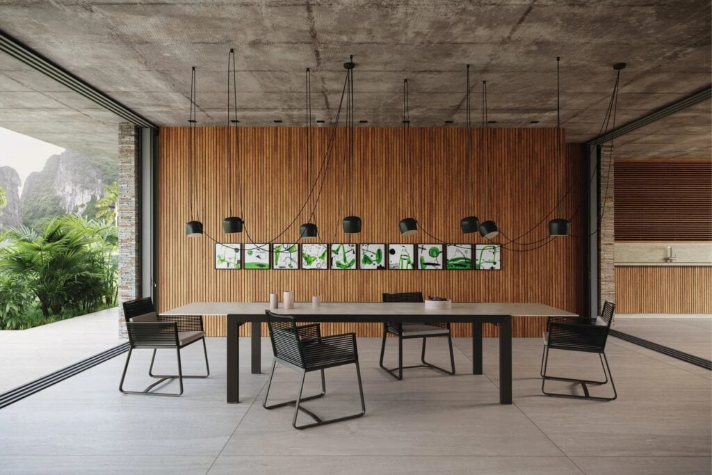 Landscape ist als Teil eines Projekts gedacht. Es ist nicht als allein stehendes Element zu verstehen, sondern verbindet sich mit seiner Umgebung und wird Teil derselben. Das Projekt ist wichtiger als das Produkt; das ist seine Quintessenz. Seine rationalistische Struktur soll den Außenraum ordnen, formen und strukturieren und gleichzeitig auf der funktionellen Ebene Schutz bieten: Lichteinfall und Wärme regeln und vor Regen und Wind schützen.