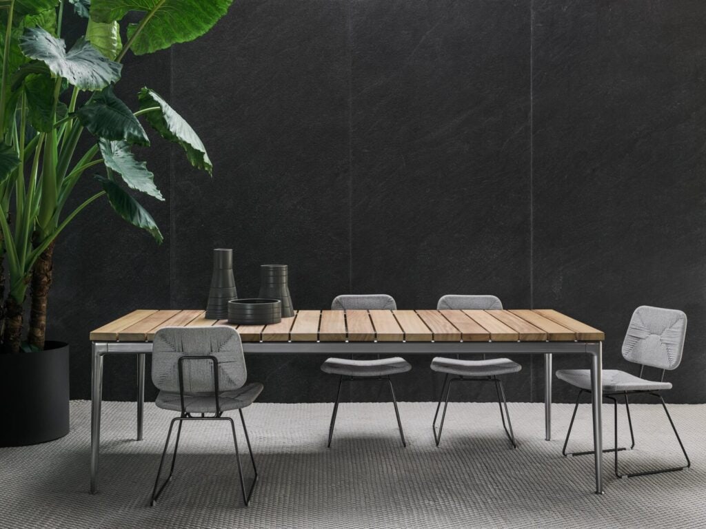 Die Familie Echoes Outdoor mit Sitzmöbeln lässt die Erinnerungen wie Echos aus anderen und ganz gegensätzlichen Epochen und Kulturen wiederaufleben: mediterran und skandinavisch, rustikal und gleichzeitig dezent, ein zeitloses Déjà-vue.
