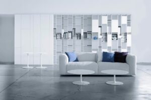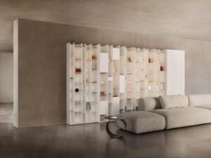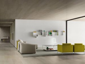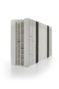 The two sizes named 2C and 3C, make Random an extremely flexible bookcase, adaptable to a wide range of living spaces and market needs. Used individually, they express the uniqueness of the design even in small settings such as compact areas or dedicated niches. When combined with the Random 5C module, they expand the collection’s modular potential, giving rise to new modular configurations.