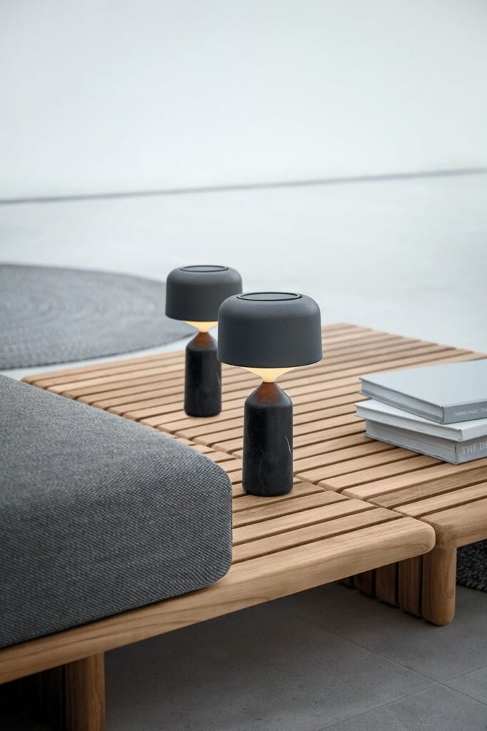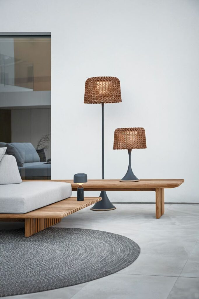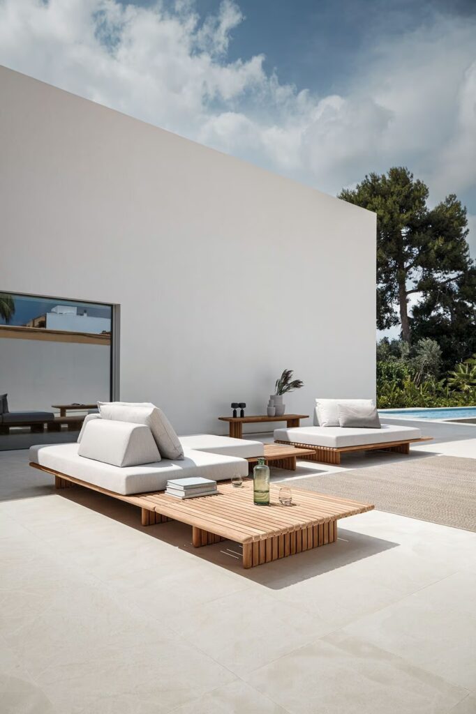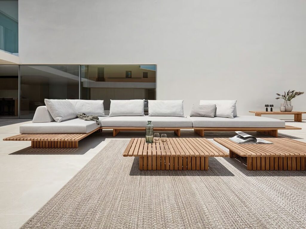 Deck - Modulares Gartensofa aus Teakholz und Stoff.