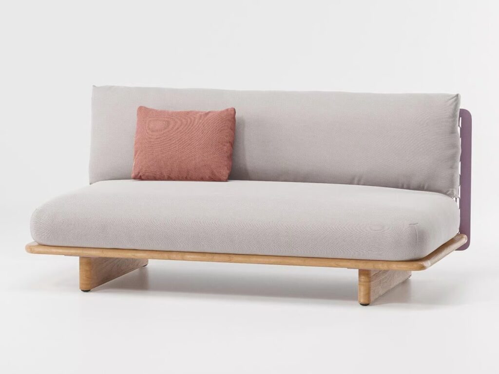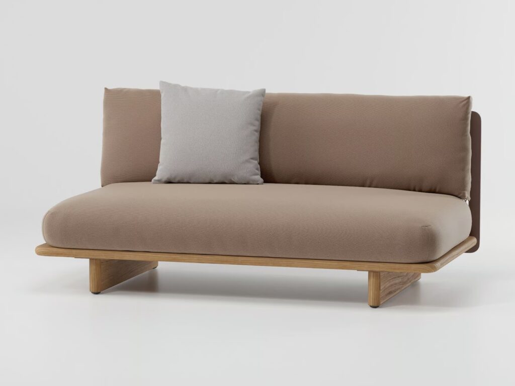 Das solide Sofagestell aus Holz und die voluminösen, äußerst bequemen Polster schaffen auch im Außenbereich einen besonderen Wohnkomfort.
