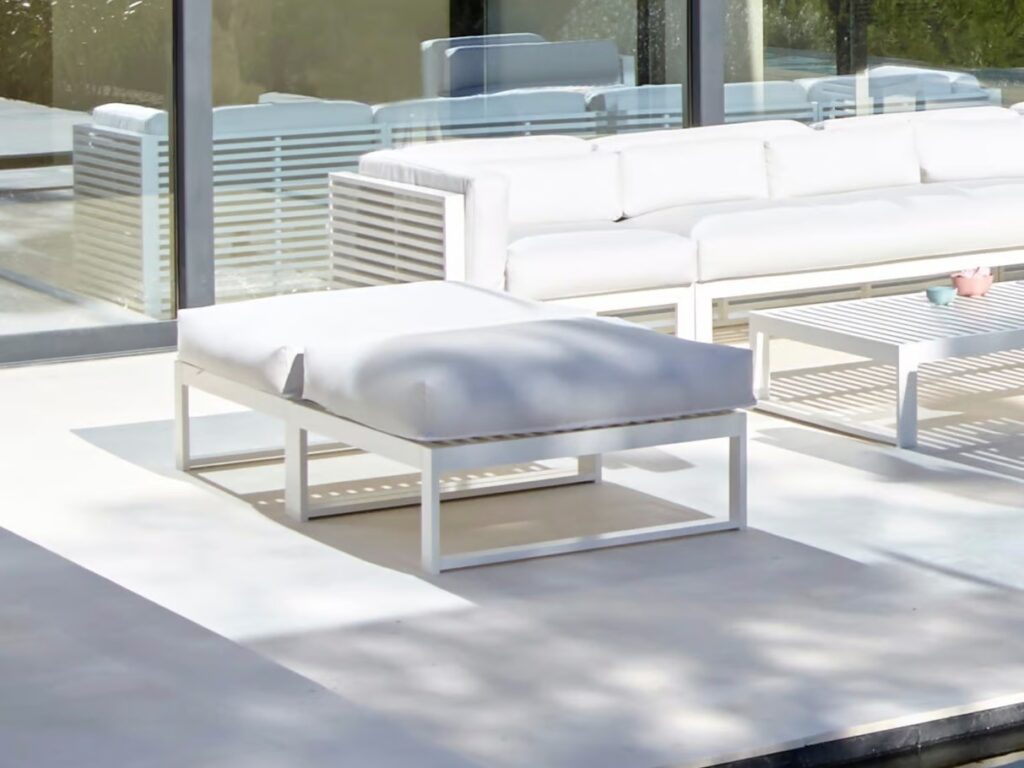 Hergestellt aus eloxiertem oder thermolackierten Aluminium. Polyurethan-Schaumstoff mit einem wasserabweisendem Bezug. Abziehbarer Bezug.