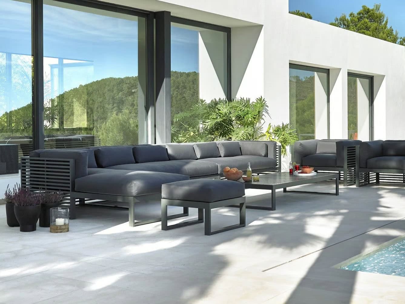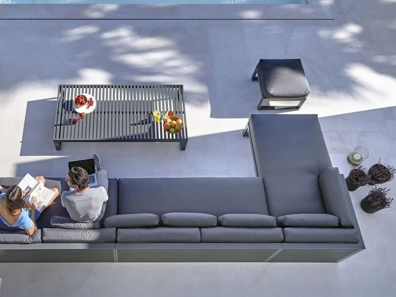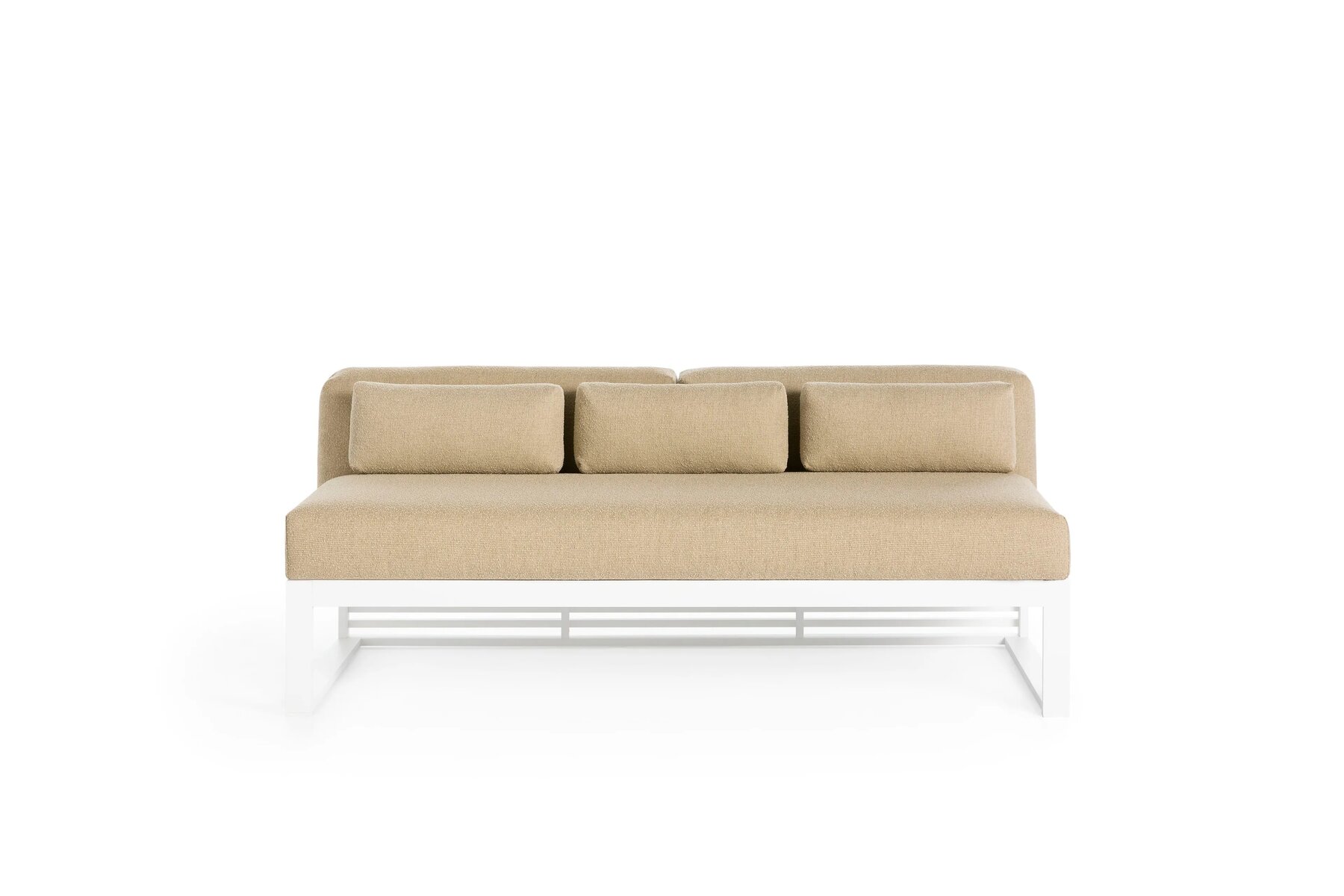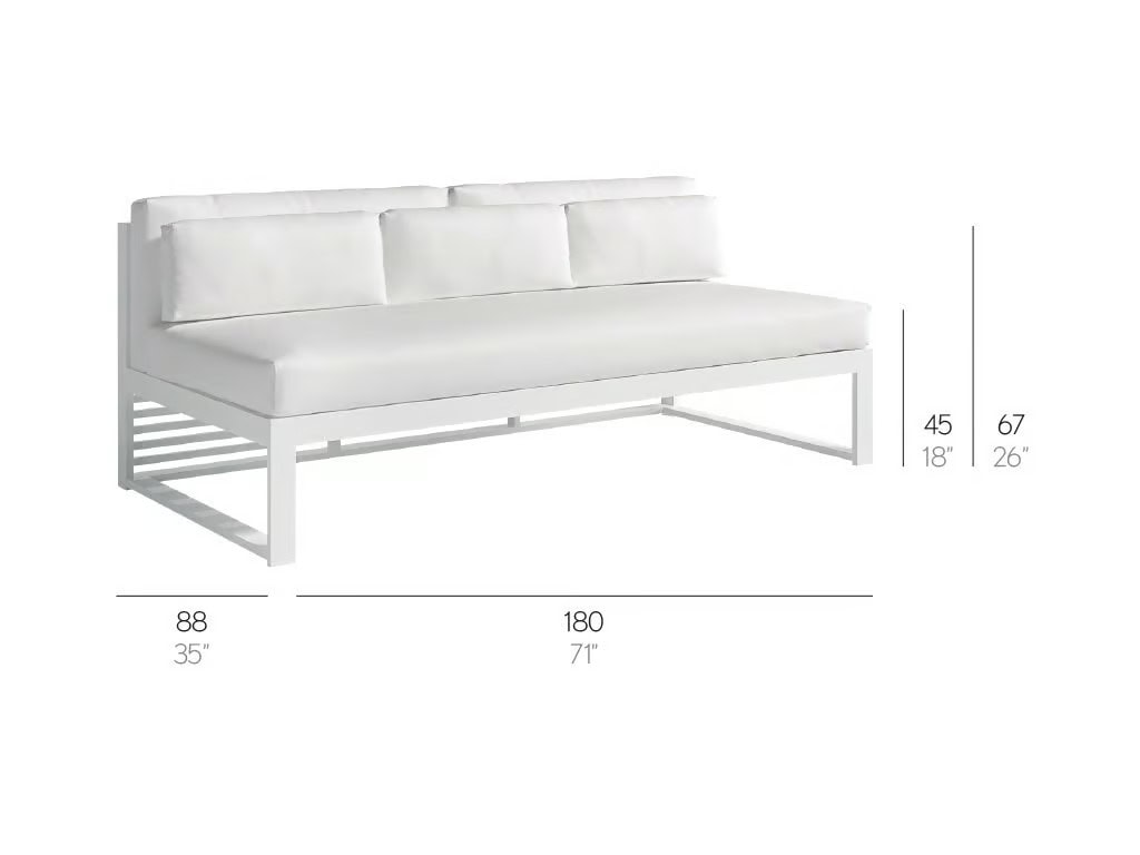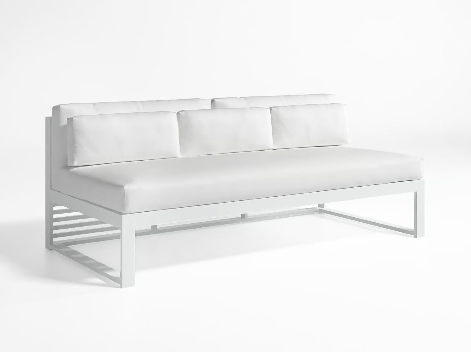 Hergestellt aus eloxiertem oder thermolackierten Aluminium. Polyurethan-Schaumstoff mit einem wasserabweisendem Bezug. Abziehbarer Bezug.