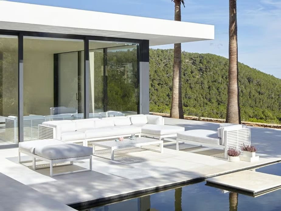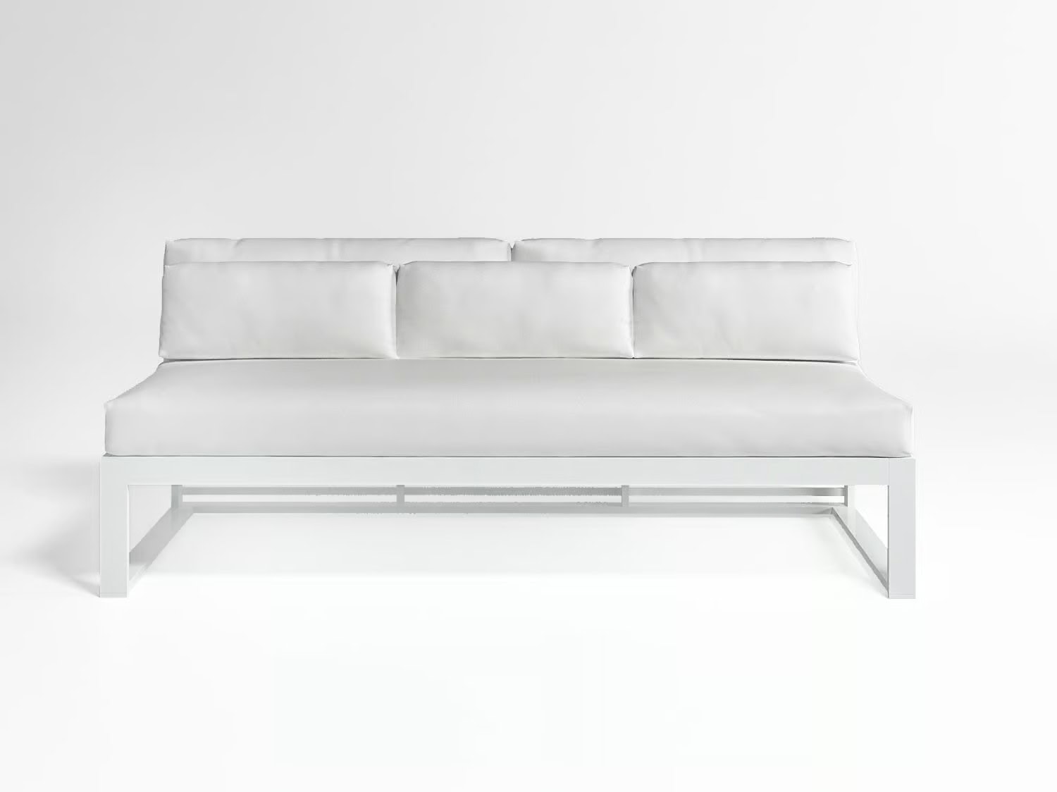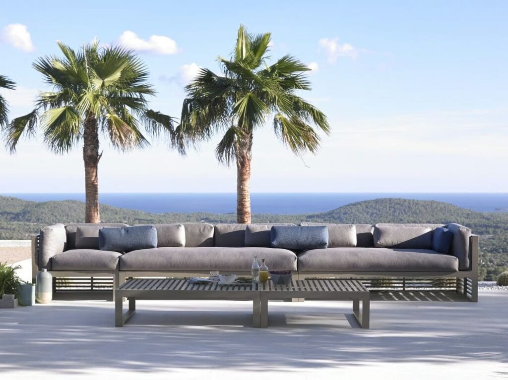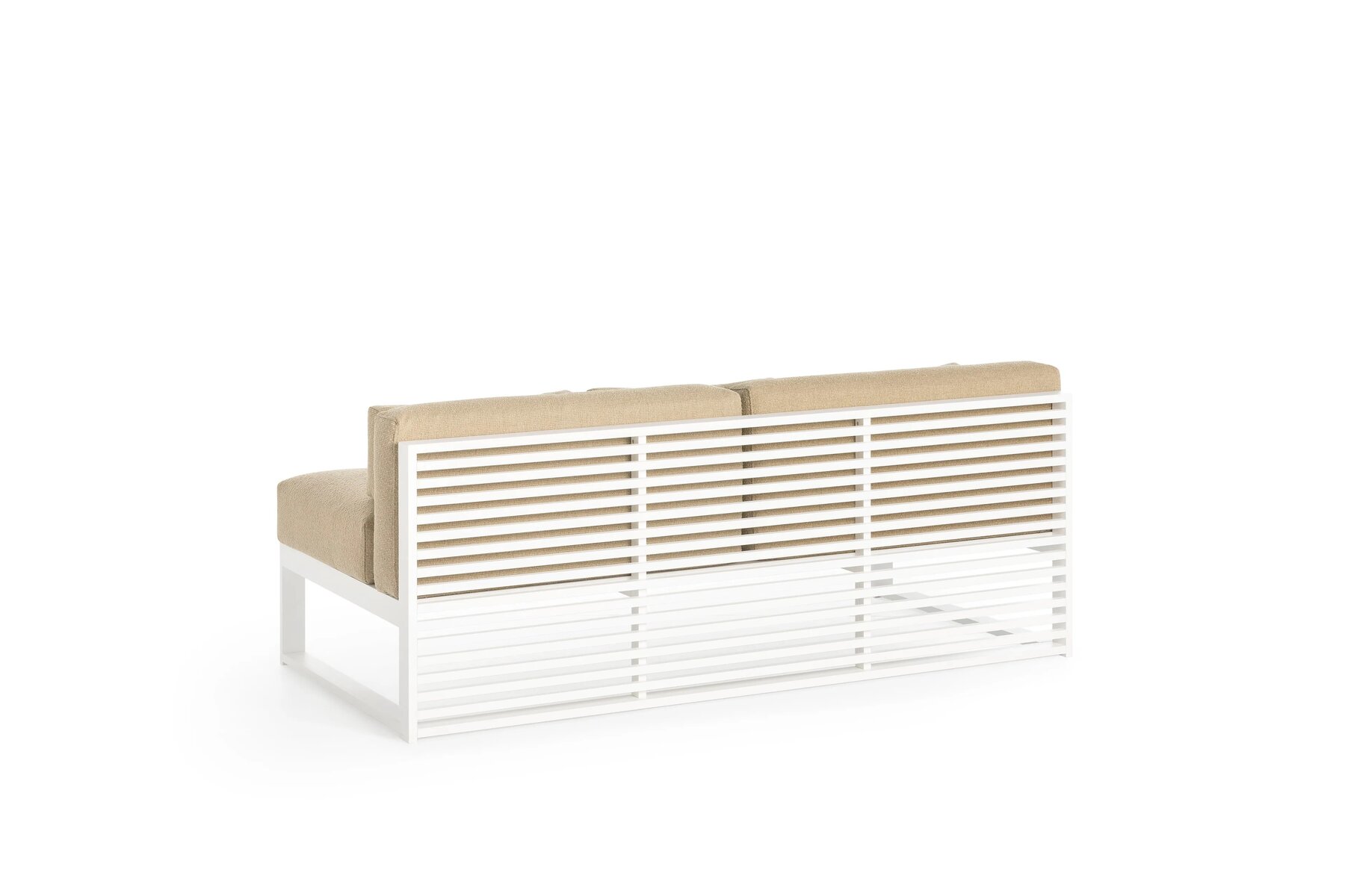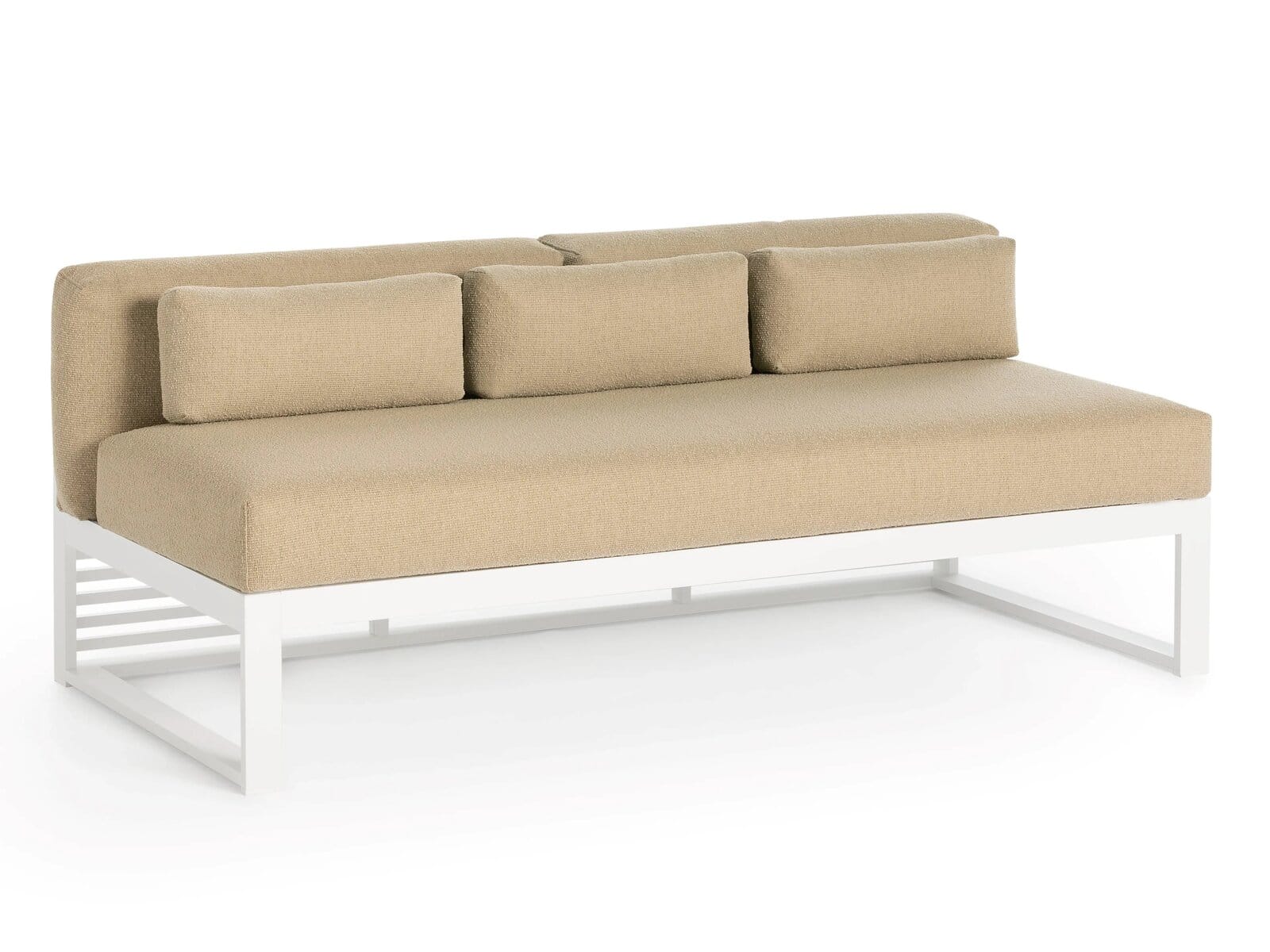 Hergestellt aus eloxiertem oder thermolackierten Aluminium. Polyurethan-Schaumstoff mit einem wasserabweisendem Bezug. Abziehbarer Bezug.