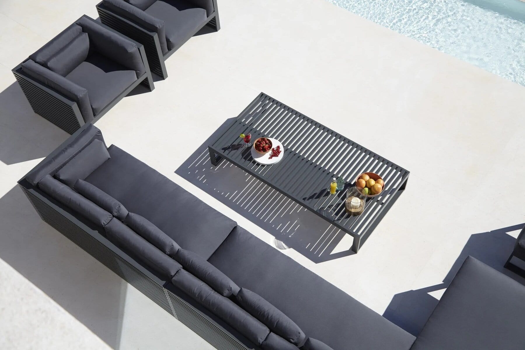 DNA ist eine Kollektion von Möbeln für den Aussenbereich, die durch das subtile Spiel der Licht- und Schattenmodulationen der mediterranen Fensterläden und das Lob des Schattens der japanischen Ästhetik in der traditionellen und zeitgenössischen Architektur inspiriert wurde – das Positive und das Negative ohne jede überflüssige Verzierung.