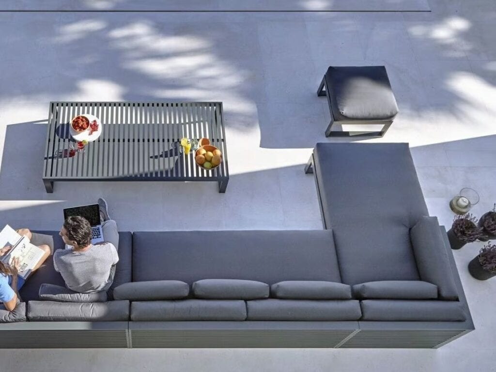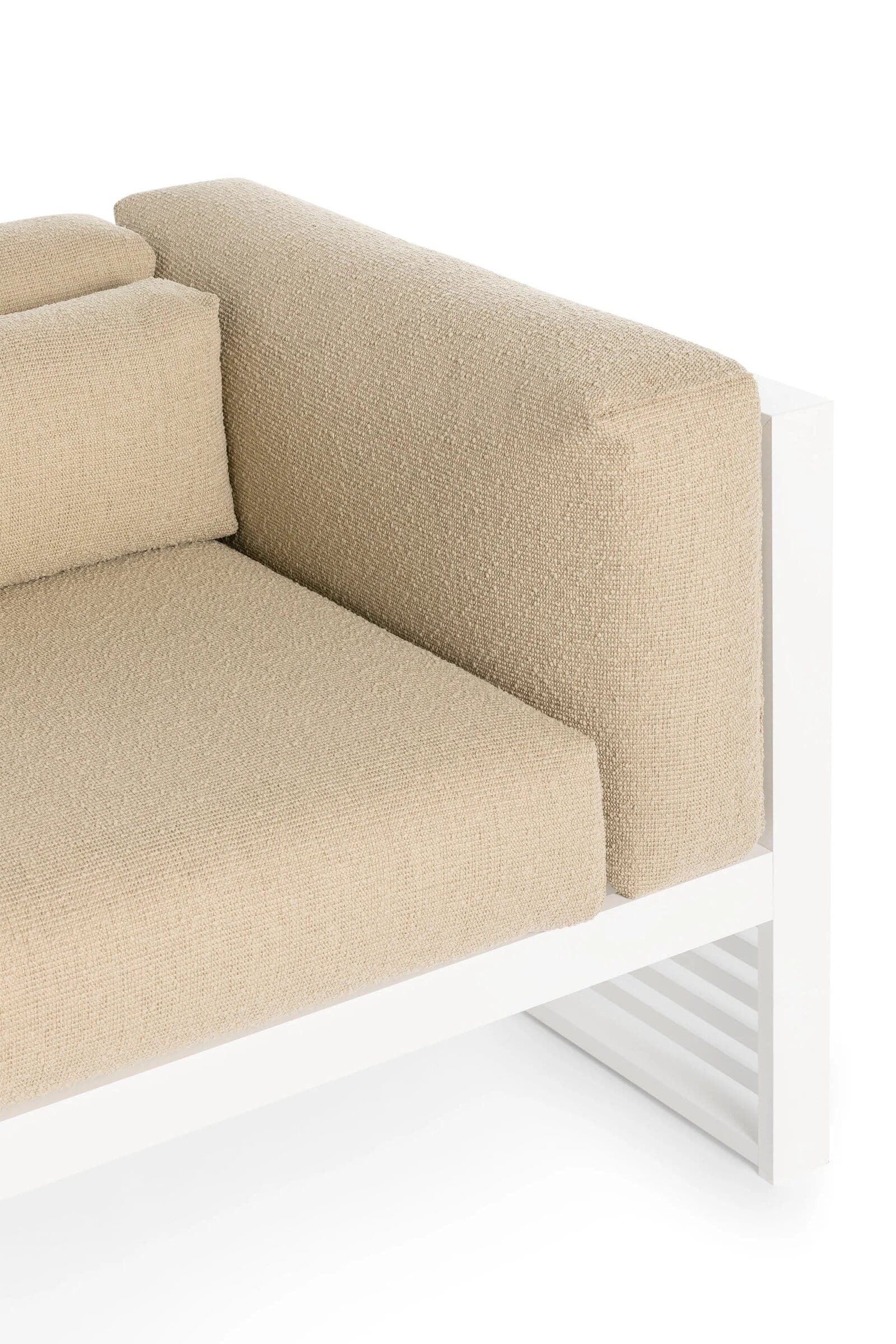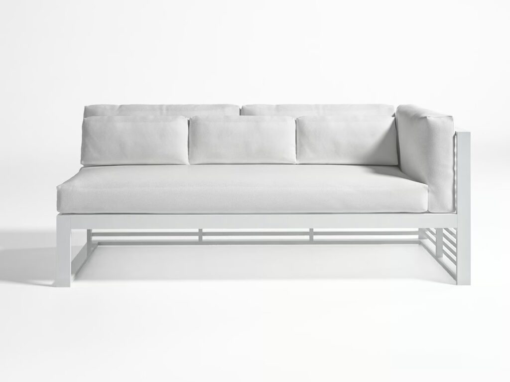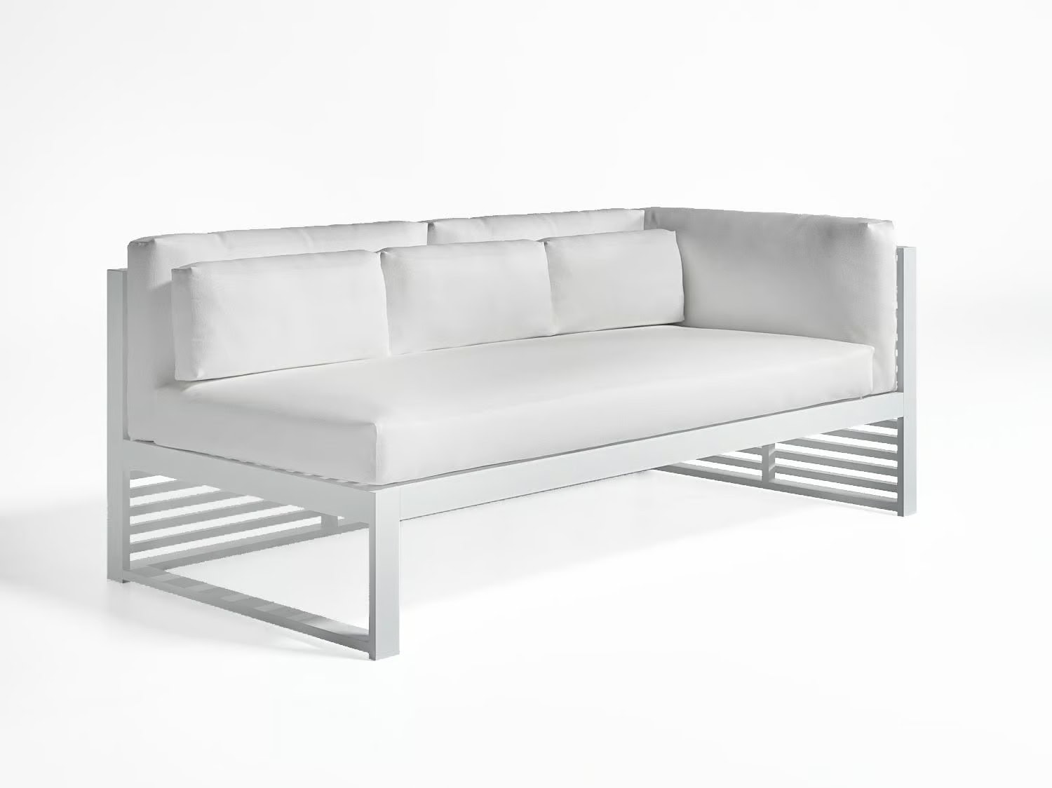 Hergestellt aus eloxiertem oder thermolackierten Aluminium. Polyurethan-Schaumstoff mit einem wasserabweisendem Bezug. Abziehbarer Bezug.