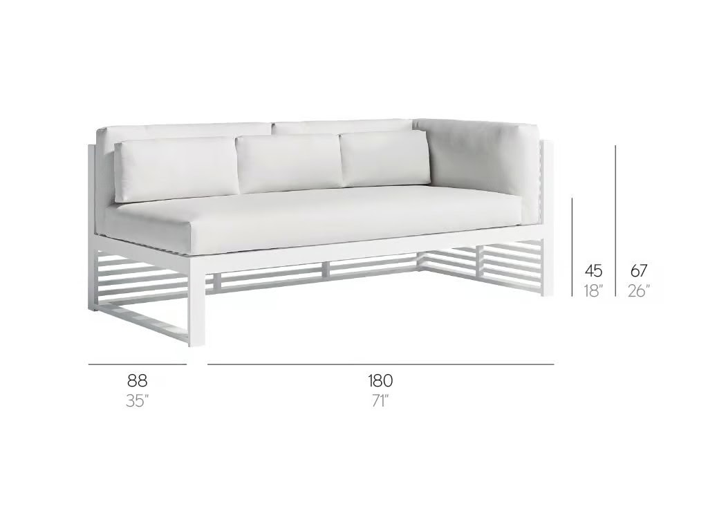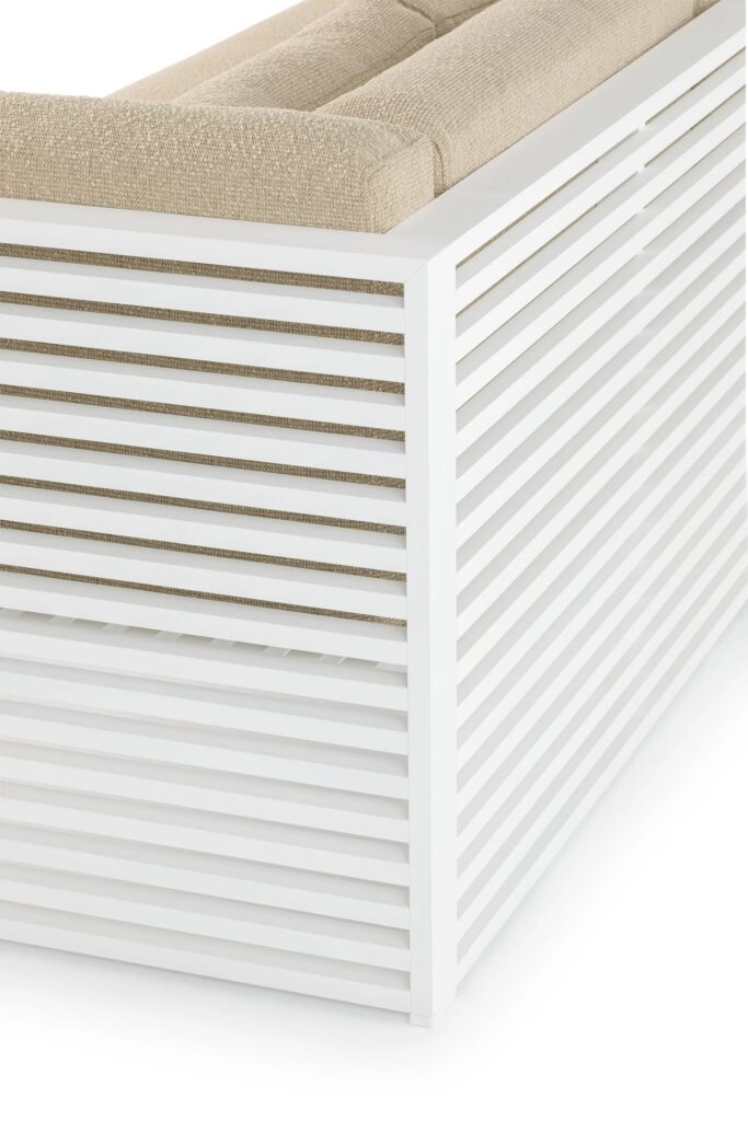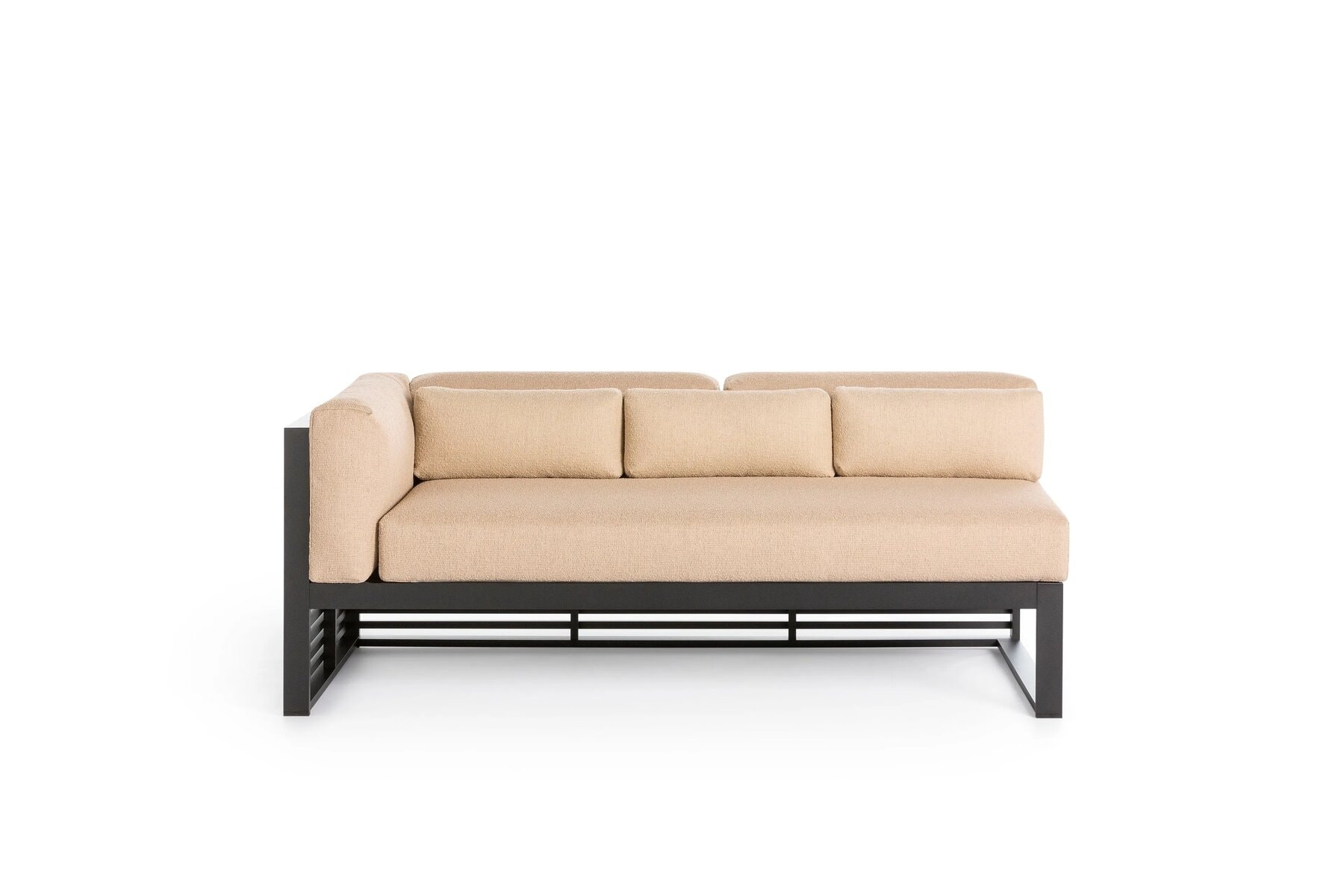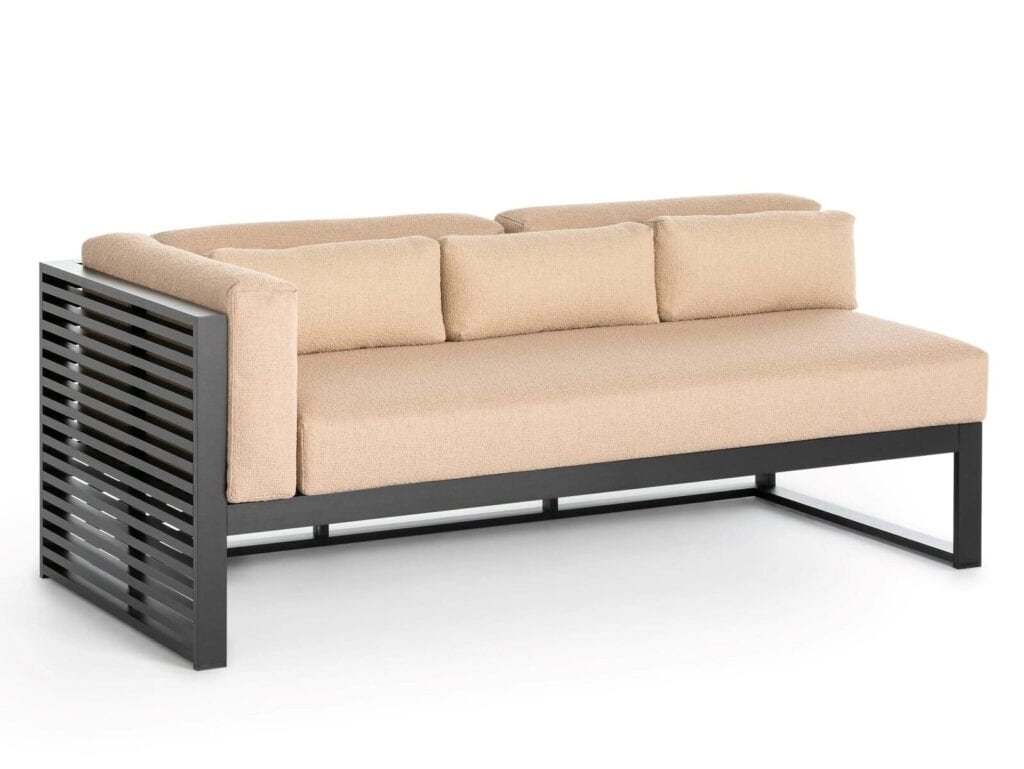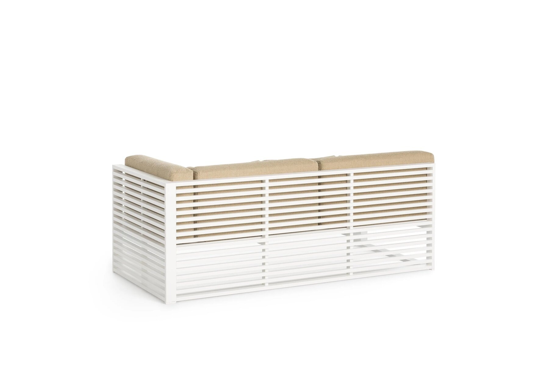 Hergestellt aus eloxiertem oder thermolackierten Aluminium. Polyurethan-Schaumstoff mit einem wasserabweisendem Bezug. Abziehbarer Bezug.