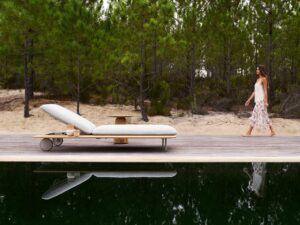 Die Kollektion Senja lädt zum Entspannen ein, indem sie Komfort und Vielseitigkeit miteinander verbindet. Der Sessel verbindet leicht wirkendes Design mit sanfter, körpergerechter Unterstützung durch seine Canax®-Rückenlehne. Die Senja-Liege hat voluminöse Kissen für den absoluten Relax-Faktor und ist mit einem seitlichen Teakholz-Tisch über die gesamte Liegenlänge erhältlich. Sowohl Stuhl als auch Liege sind mit pulverbeschichteten Aluminiumbeinen in Leinen oder Wengé oder in Plantagen-Teakholz erhältlich.