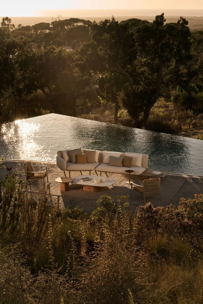 Senja is an outdoor sofa with an aluminum frame and fabric upholstery. This new piece allows for the creation of compositions with organic shapes, perfectly adapting to any outdoor space. It can easily be connected to sofas, armchairs, and chaise longues from the collection, and can be placed at the end of a composition to create a cozy corner. Alternatively, it can be used as a standalone module, becoming an island of pure relaxation. With this new interpretation, SENJA continues to redefine the boundaries of comfort and outdoor style, making every environment inviting and elegant.