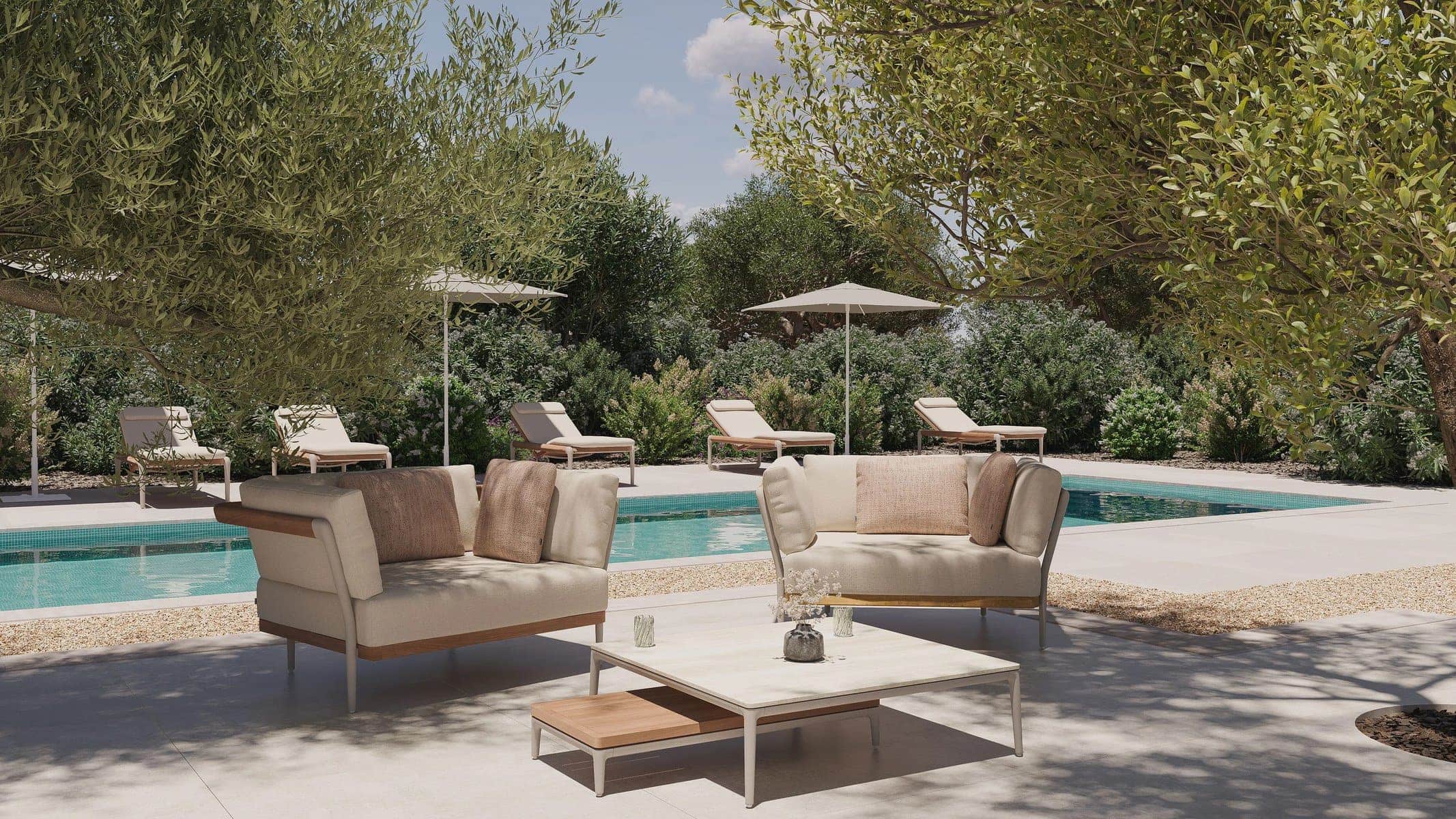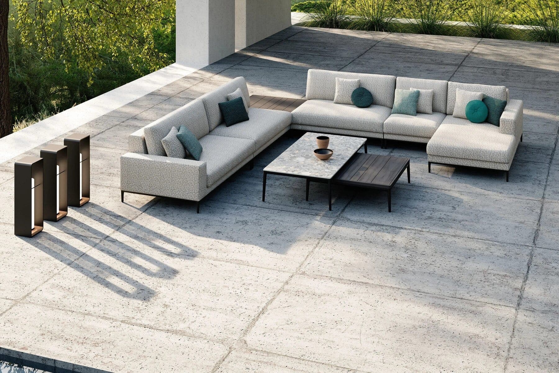 Ein schlankes Gestell, raffinierte Bezugsstoffe, aussergewöhnlicher Sitzkomfort und unendliche Kombinationsmöglichkeiten sind nur einige Merkmale von ZENDO SENSE, einer neuen Interpretation einer zeitlosen Manutti-Ikone . Sorgfältig ausgewählte Materialien werden zu langlebigen, wetterfesten Stücken verarbeitet, die Luxus ausstrahlen und keinen Unterschied zwischen Innen- und Aussendesign erkennen lassen. ZENDO SENSE bietet modulare und freistehende Sofas, Clubsofas, Daybeds und Couchtische und passt dank seiner Vielseitigkeit in jede Umgebung: von intimen Stadtbalkonen bis hin zu grosszügigen Terrassen mit unendlicher Aussicht.