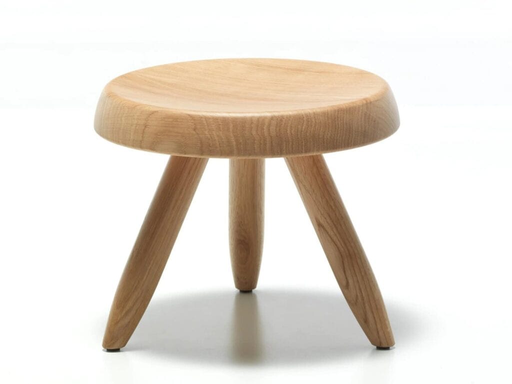 Beide werden durch die Berge inspiriert. Einer hat seinen Namen von den Hirten der Alpen, die diese Art von Hocker zum Melken verwendeten, der andere vom französischen Ort, den Perriand so liebte. Diese Einrichtungsobjekte heben sich durch die Ehrlichkeit ihrer einfachen Formen und durch die Konkretheit hervor, die vom Material und von der Funktion ausgedrückt wird. Die gedrechselte Sitzfläche ist sowohl beim Tabouret Bergere mit den stilisierten Beinen kombiniert - die niedrige Variante hat drei Beine aus handgedrechseltem Massivholz - als auch bei der hohen Version Tabouret Méribel, der drei kantig geschnittene Beine aufweist. Diese kleinen Meisterwerke werden von Cassina dank sorgfältiger handwerklicher Verarbeitung produziert, die der Authentizität des Projekts ihre Ehre erweist. Sie können einzeln oder in originellen Kompositionen verwendet werden. Der Einsatz des Massivholzes kommuniziert ein angenehmes Gefühl der Weiche, mit der Fortsetzung der Maserung zwischen Platte und Rand.