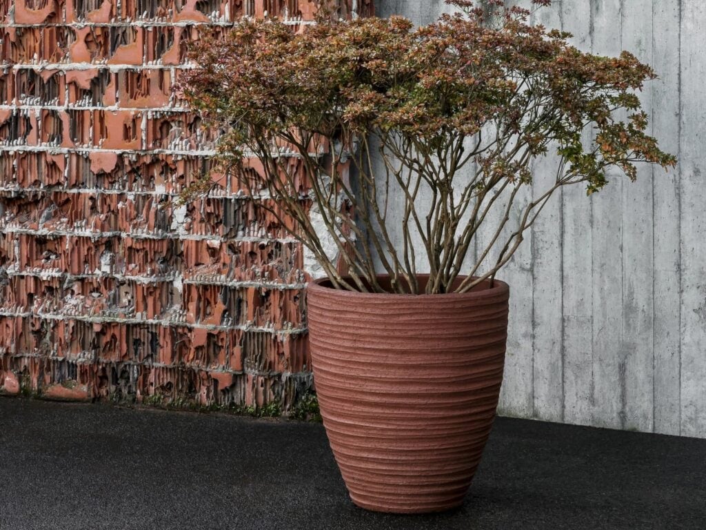 Seit vielen Jahrtausenden werden aus Terrakotta schöne Kunstgegenstände und Töpferwaren hergestellt. Die frühesten Beispiele für die Verwendung von Terrakotta lassen sich bis in prähistorische Zeiten zurückverfolgen. Unsere Terrakotta behält immer ihre typische Farbe, die je nach Eisengehalt in verschiedenen rotbraunen Schattierungen variiert, und wird auf der Basis von Kaolin hergestellt, das praktisch kein Wasser aufnimmt. Dadurch ist ein Domani-Terrakottatopf frostsicher und kann das ganze Jahr über in jedem Klima verwendet werden.